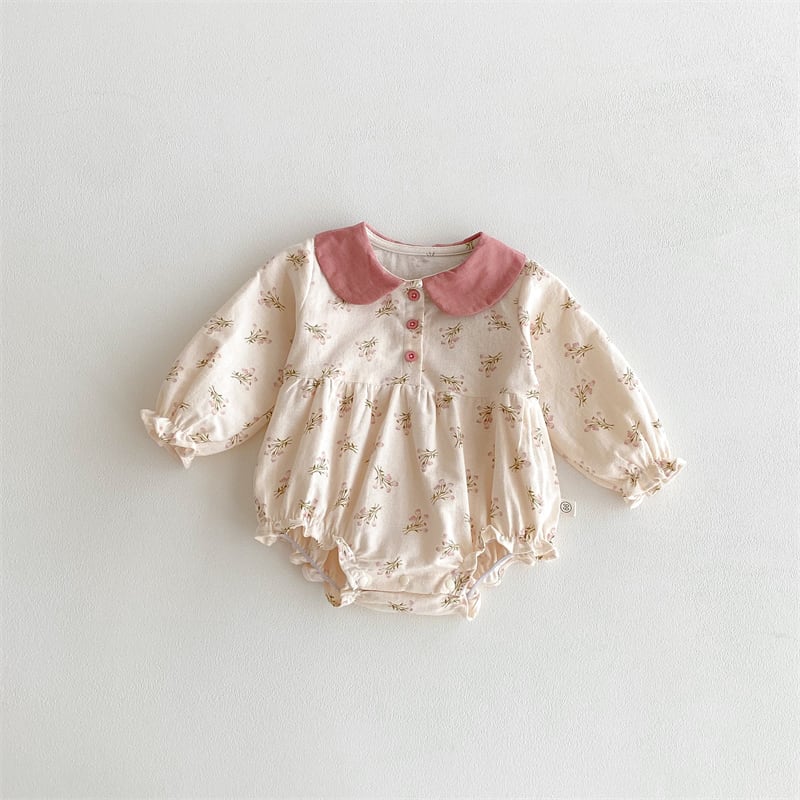 【海外からの取り寄せ】2025秋新作 ベビー服 女の子 ピーターパンカラー 花柄 ロンパース 子供服 可愛い 柔らか 2色 #[ckd1095295_18100]【送料込み】【260125】