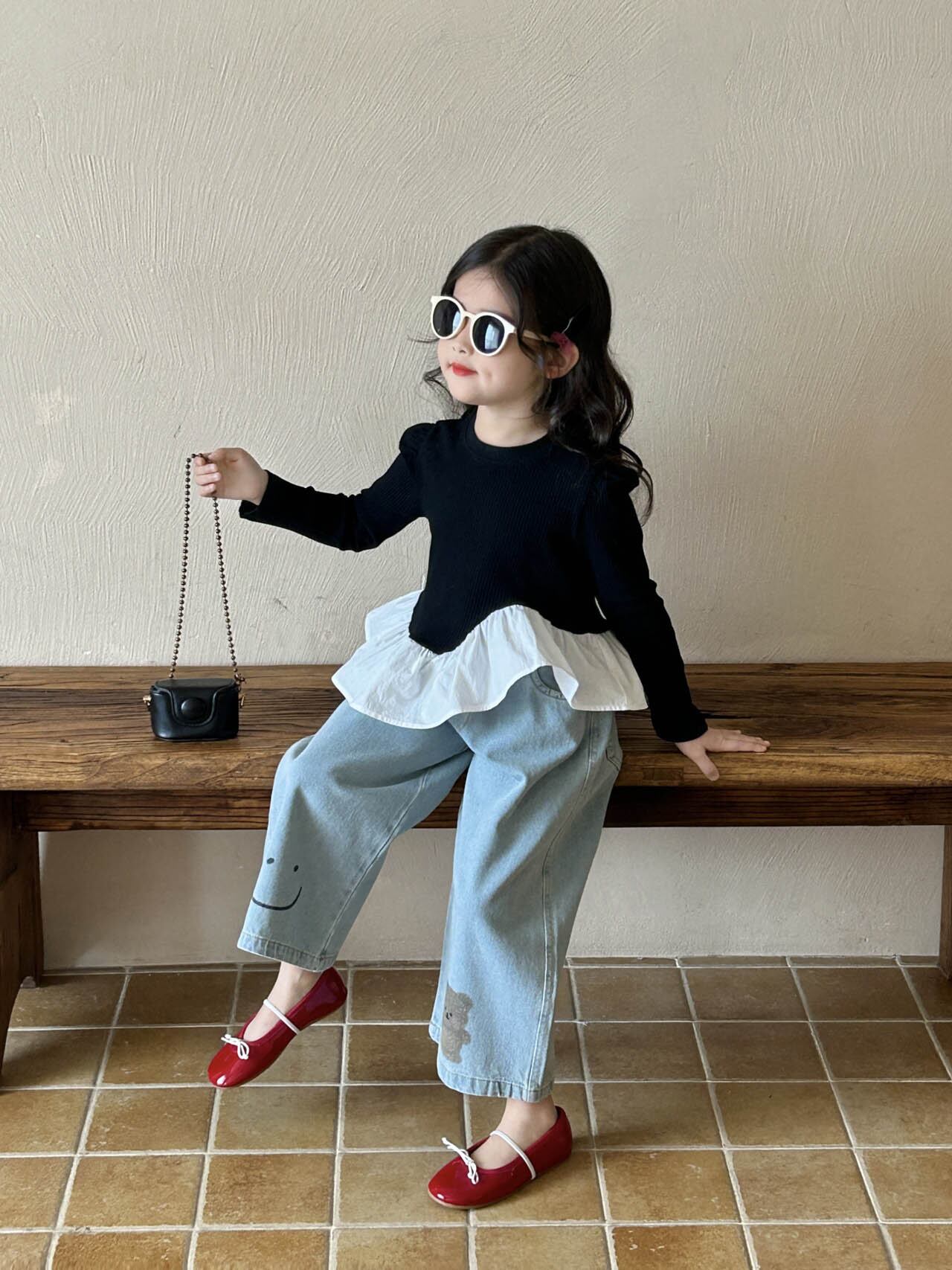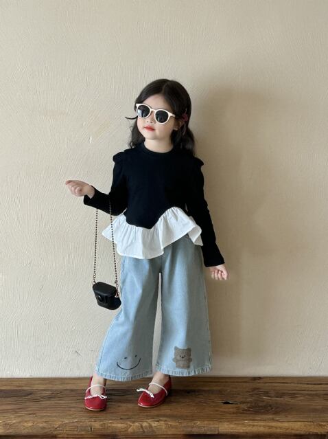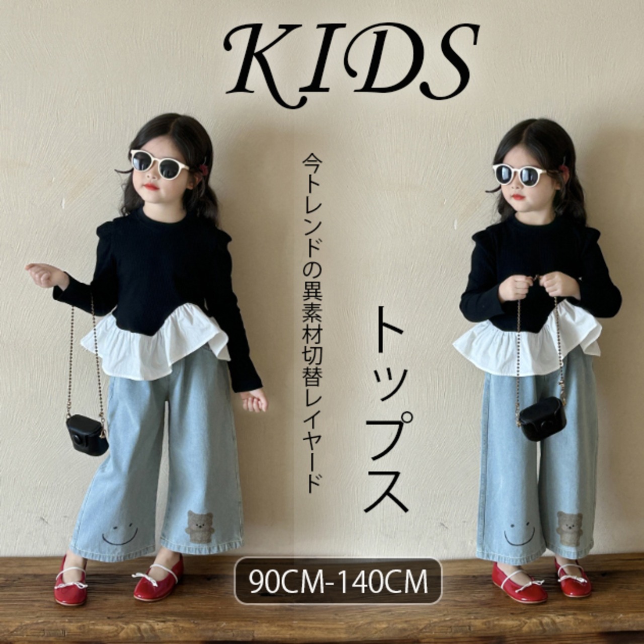 【海外からの取り寄せ】2025新作 韓国子供服 女の子 キッズ トレンド トップス 異素材 切替 レイヤード ぽわん裾 #[kids897_16800]【送料込み】【251128】