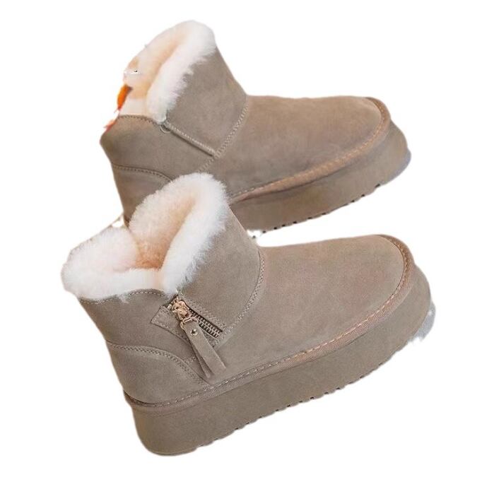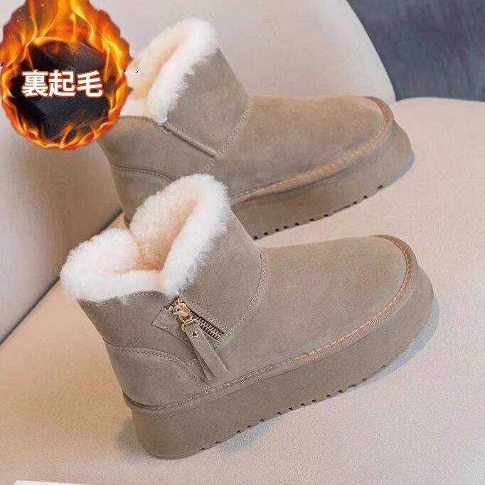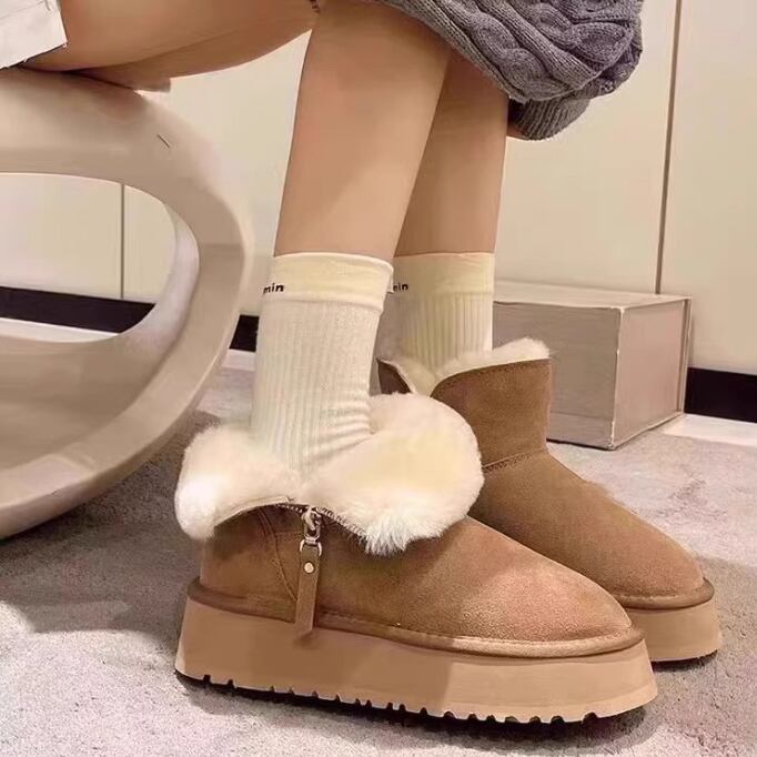 暖かくて柔らかいファーに包まれた厚底ムートンブーツ