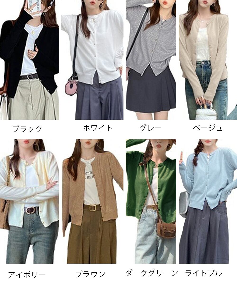 丸首ニット 前開き オフィスカジュアル 通勤コーデ春夏秋冬