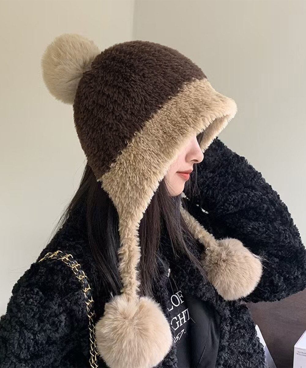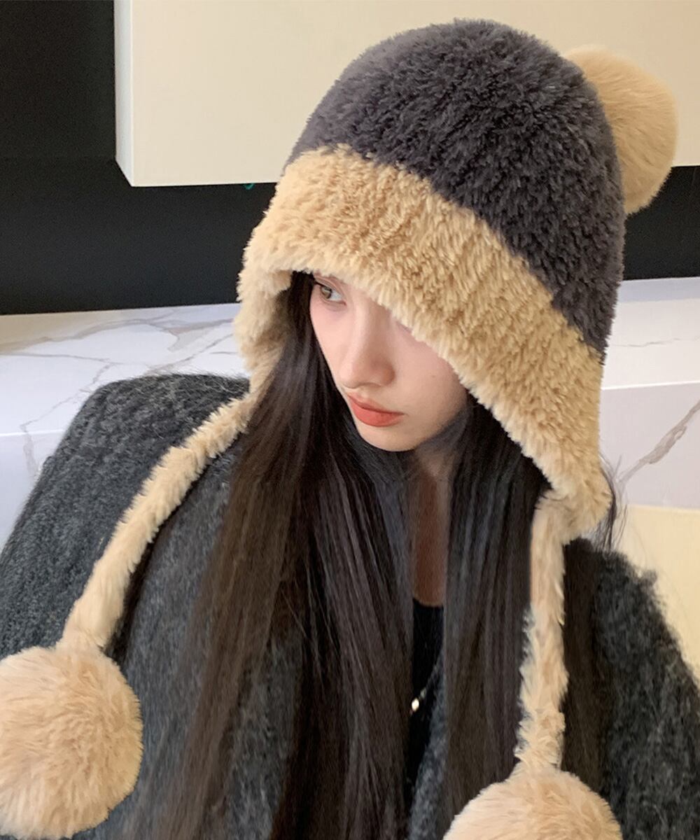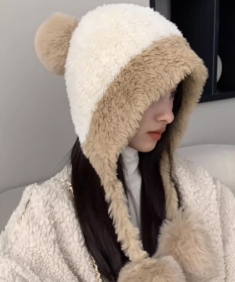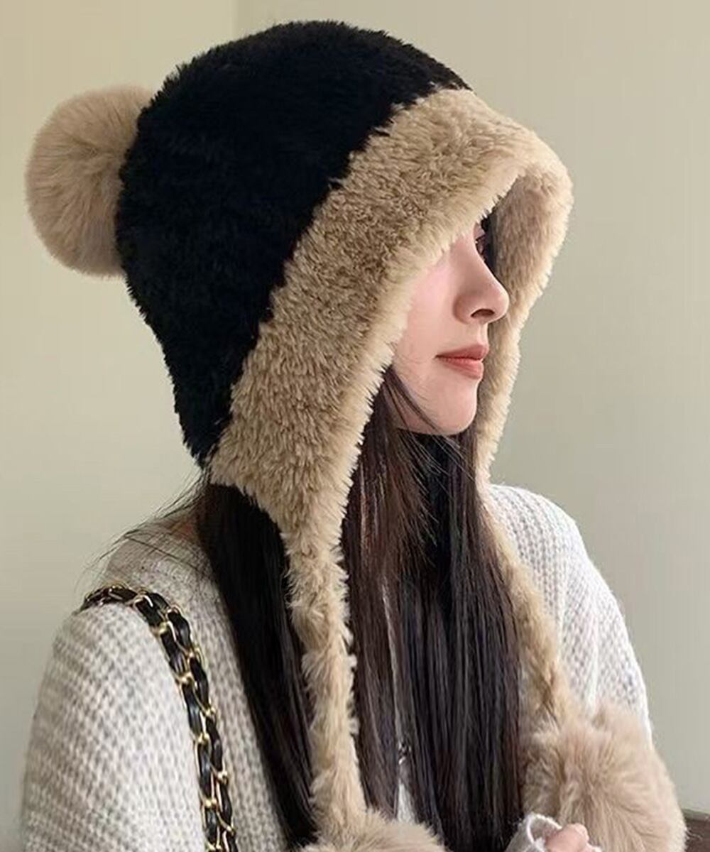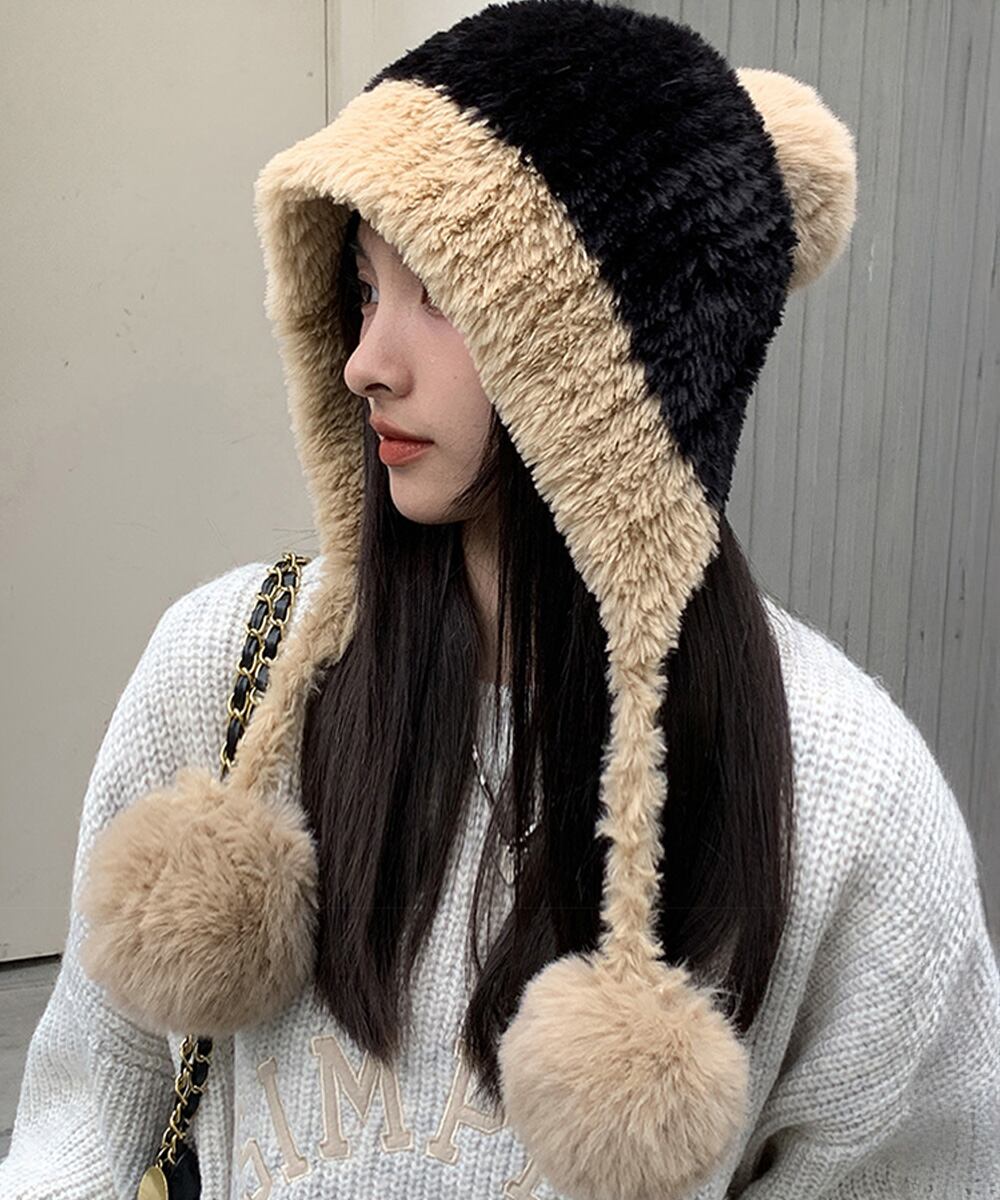寒さ対策帽おしゃれ 配色ぼうしお出掛け 耳あったかグッズ冬