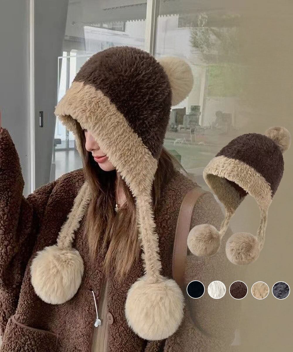 レディース 柔らか帽子 耳あて付き秋冬ハット 暖かい防寒ボア帽子 小顔 ふわふわニットキャップ ボリューム可愛い 韓国風