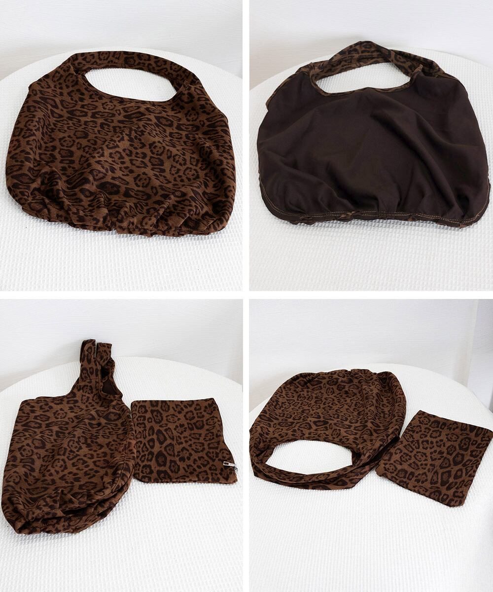 ポーチ付きショルダートート 秋冬ヒョウ柄鞄 アニマル柄バッグ 軽量A4対応 カジュアル肩掛け鞄 折り畳めるサブバッグ旅行