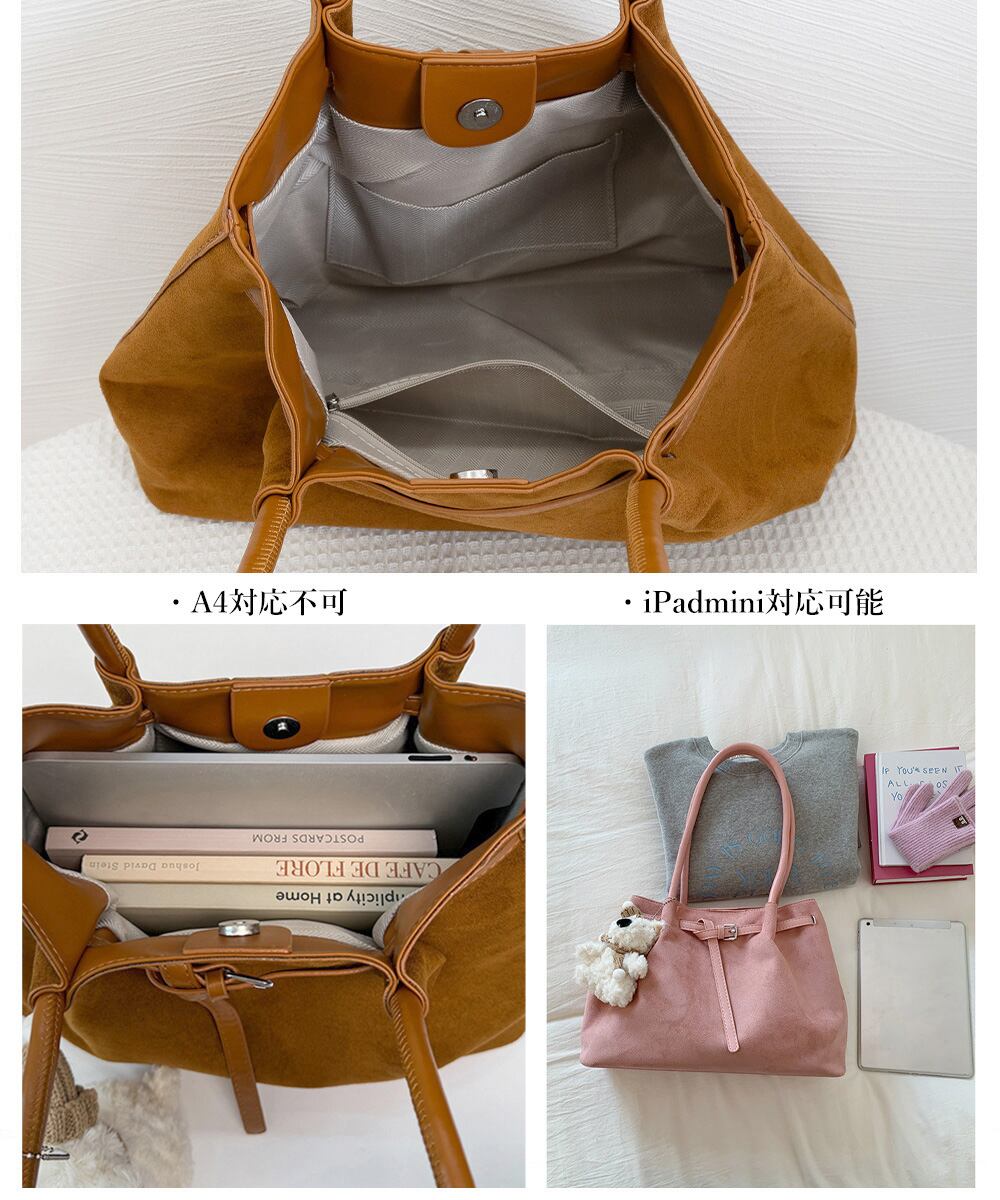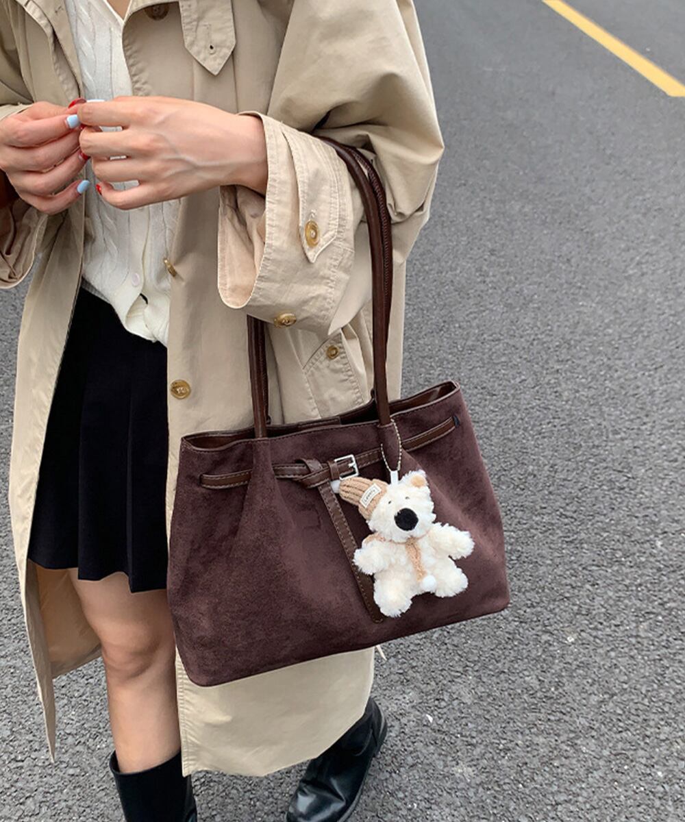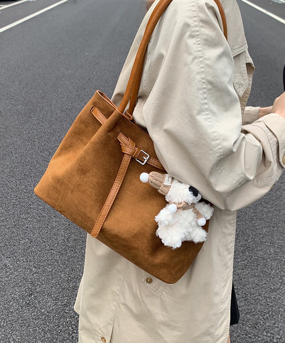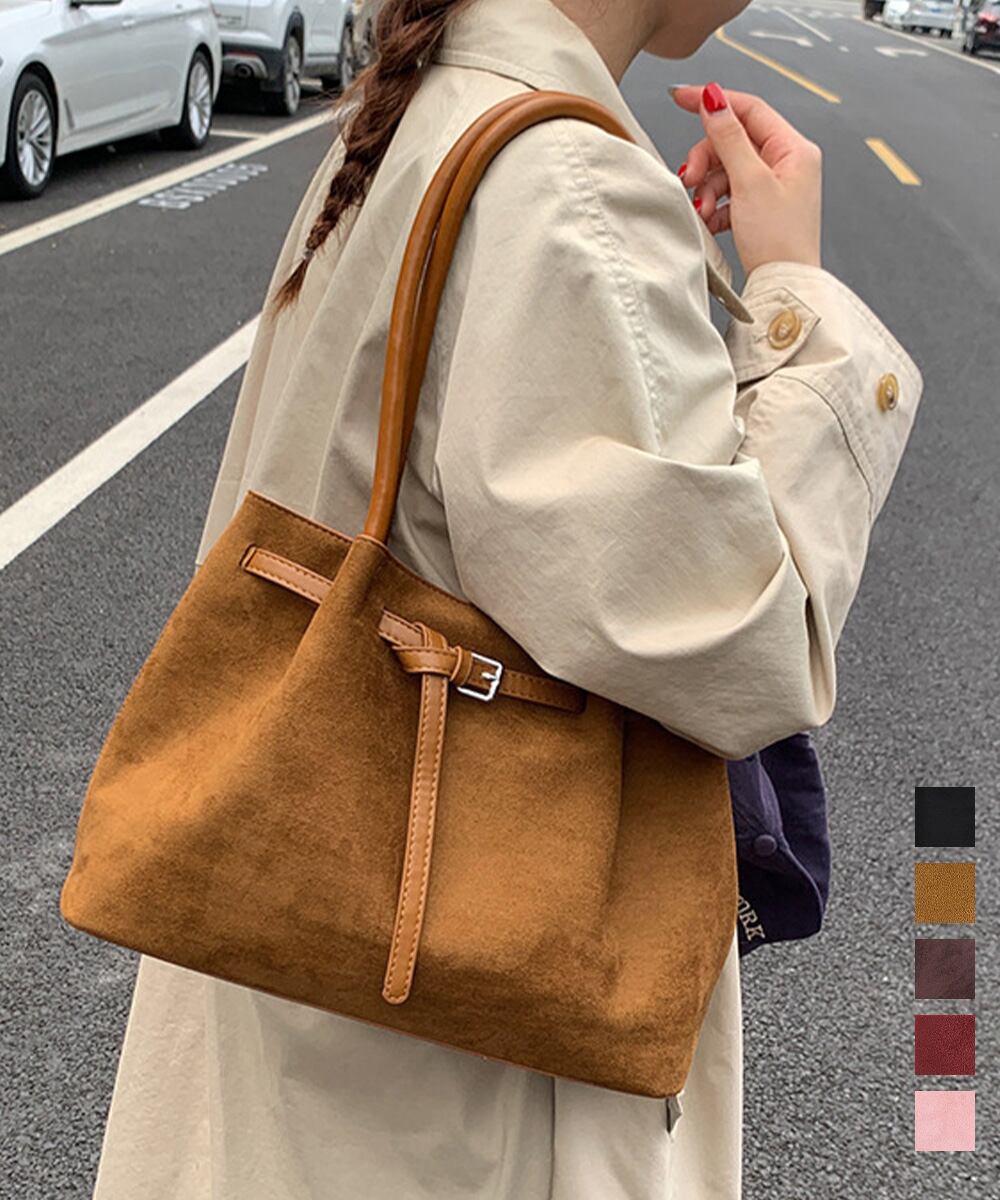 【日本倉庫からの発送】 スエード調トートバッグ ベルトデザイン鞄 #[90BAIGOU-008_26100]【送料込み】【251111】