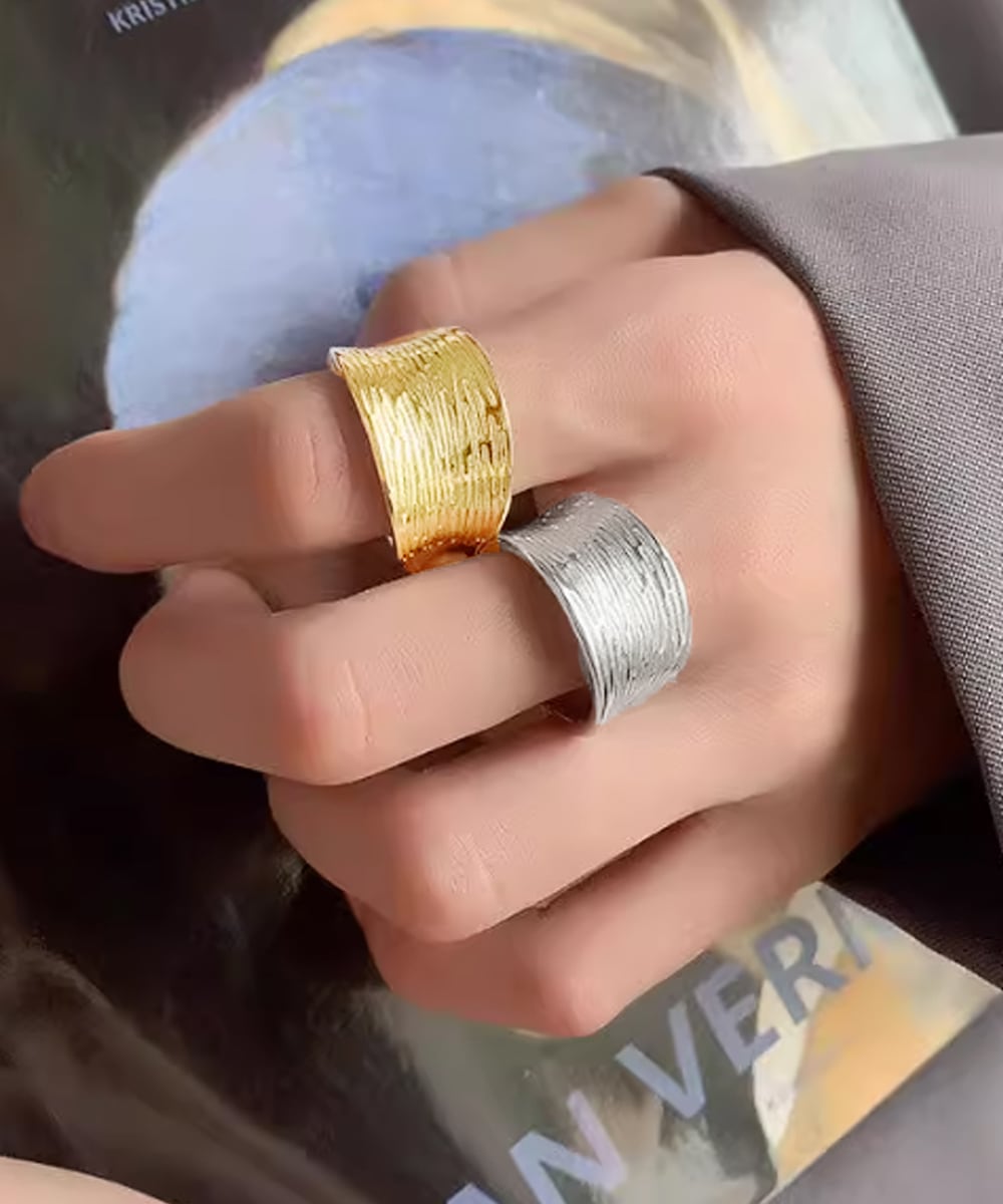 大人可愛い テクスチャーリング プチプラ 太めリング おしゃれ 指輪 シルバー ゴールド 幅広リング トレンド 10代