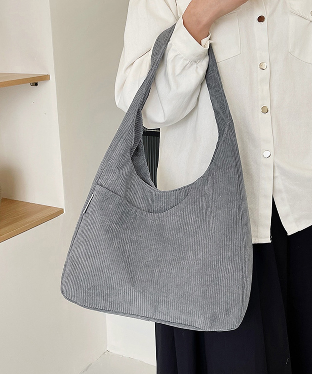 コーデュロイ素材で仕立てた、秋冬にぴったりのワンショルダーバッグ。