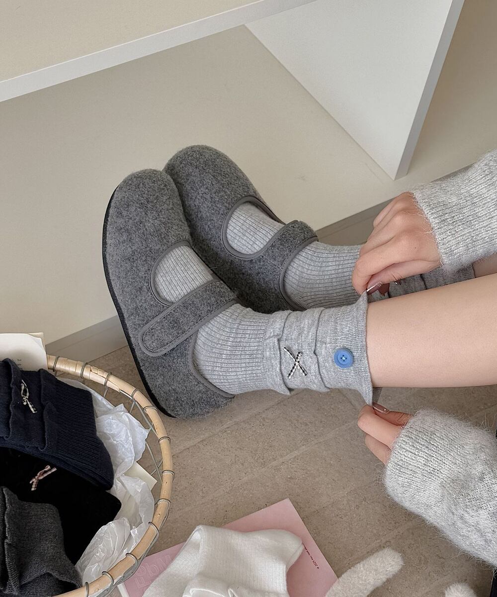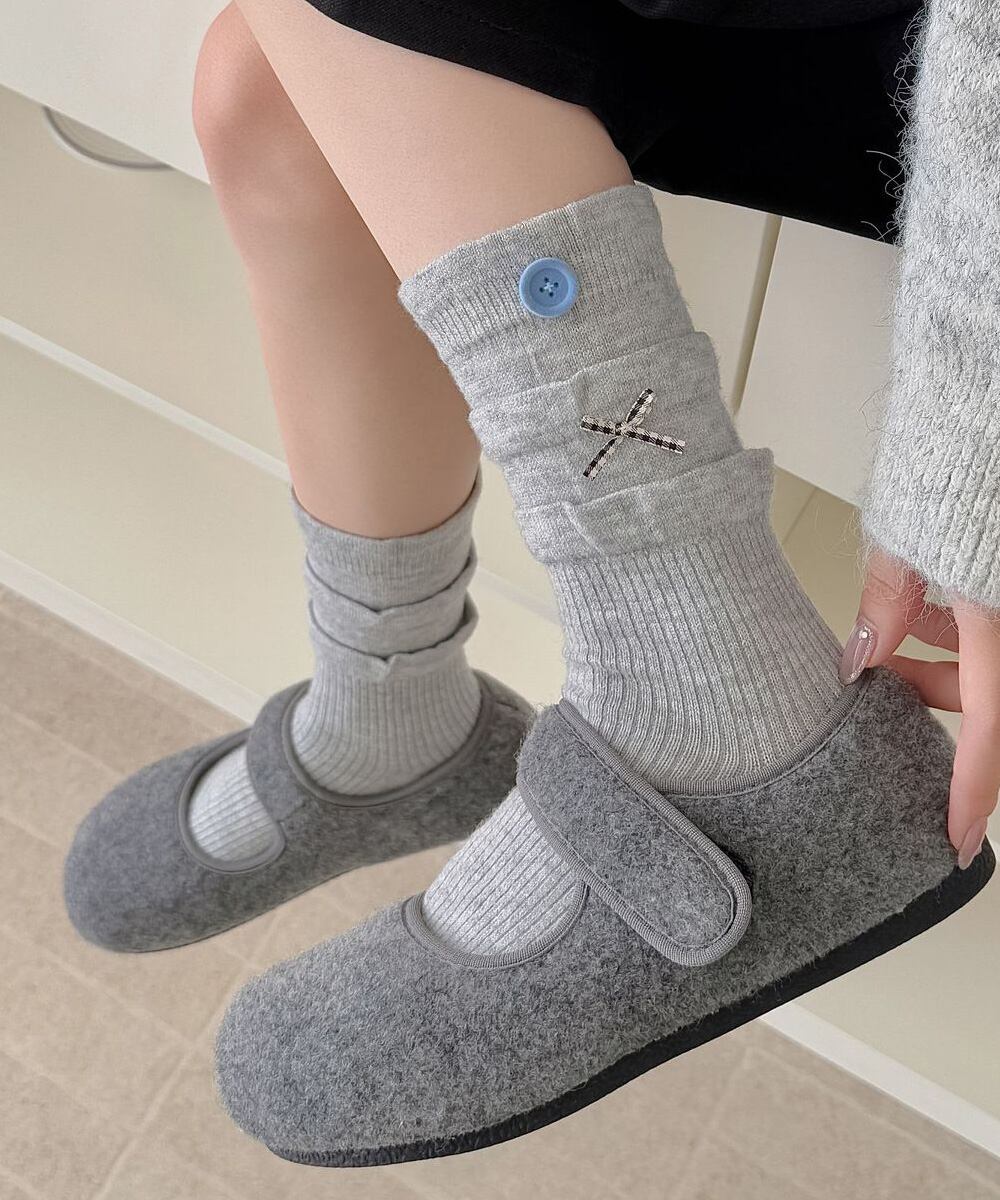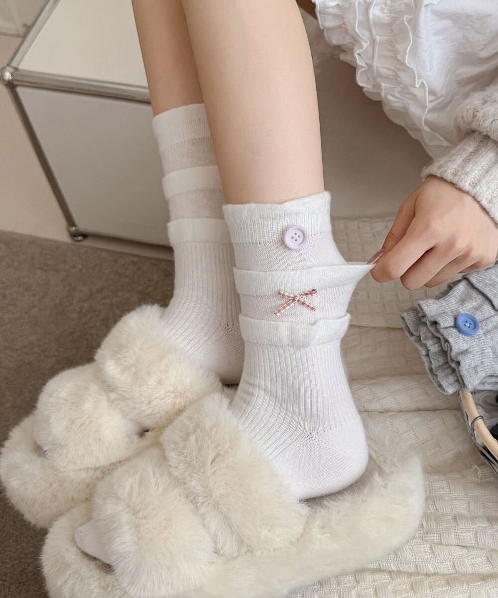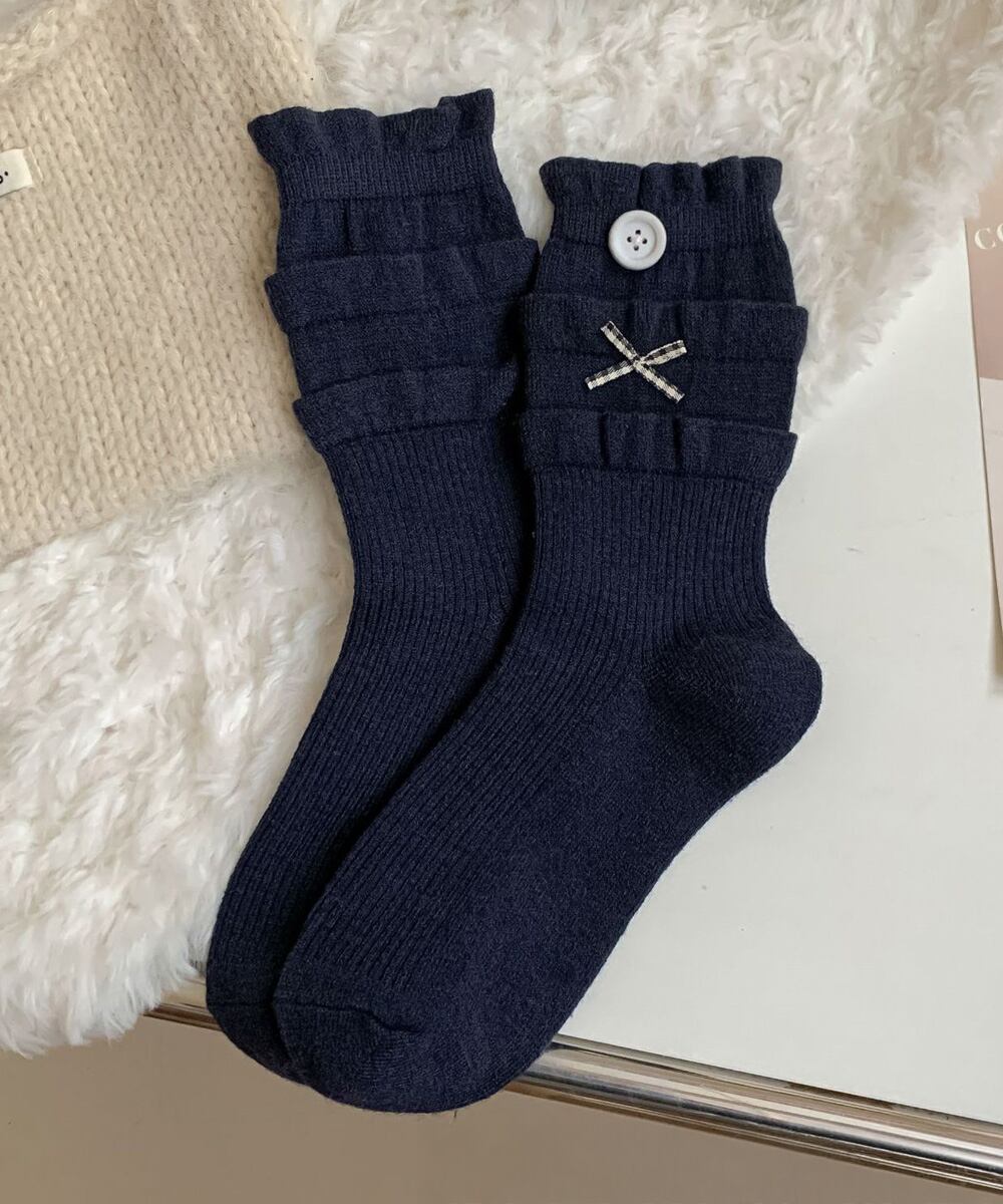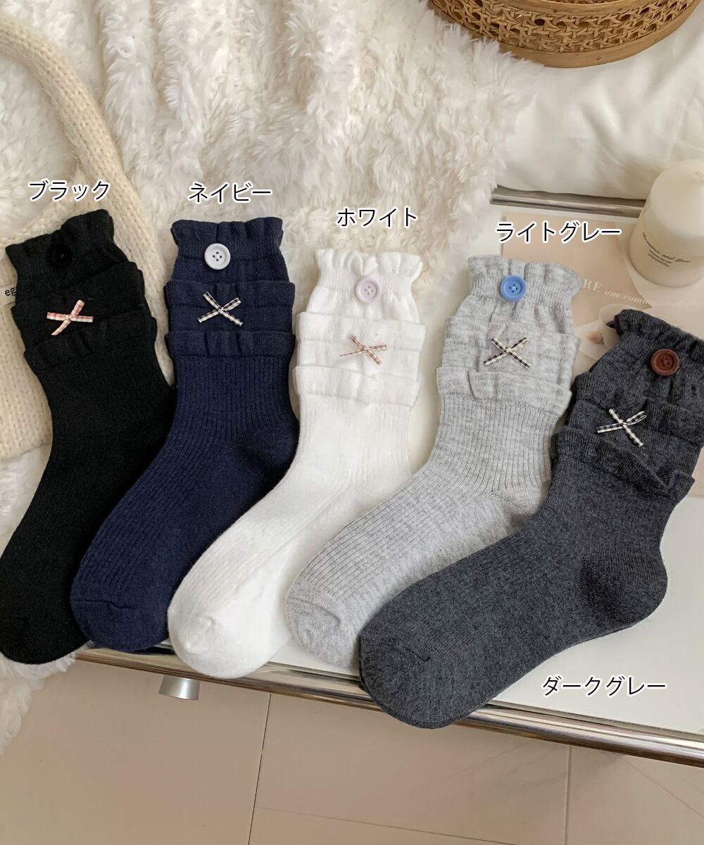 【日本倉庫からの発送】 ボタン リブソックス レディース 可愛い #[88CXH-124_7300]【送料込み】【251111】