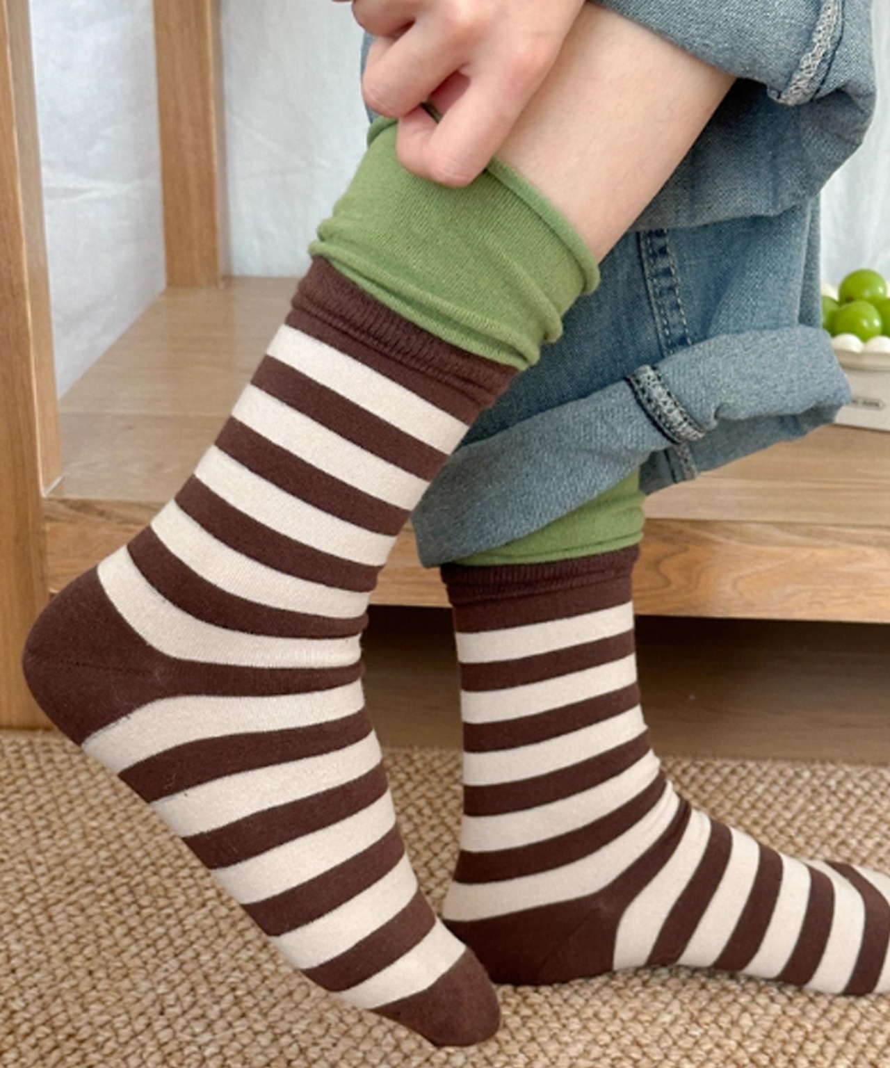 レトロな雰囲気がかわいいカラーボーダーソックス。