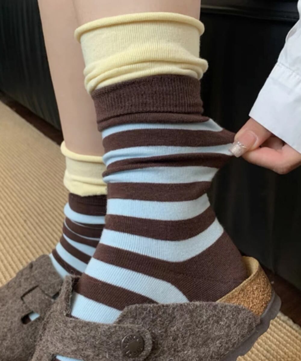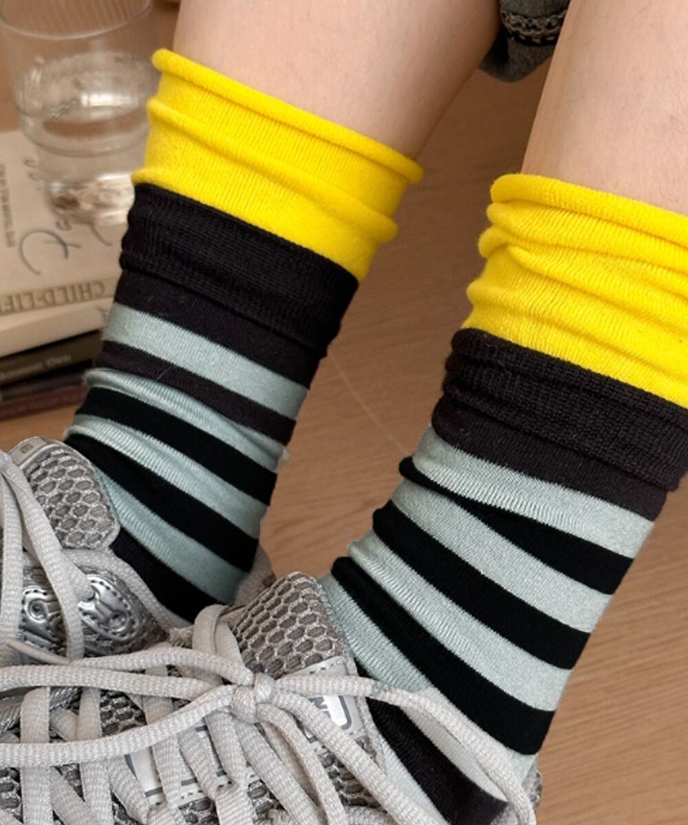 トレンド靴下韓国風 バイカラーソックス ルーズソックス春夏