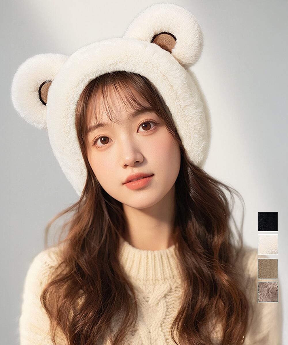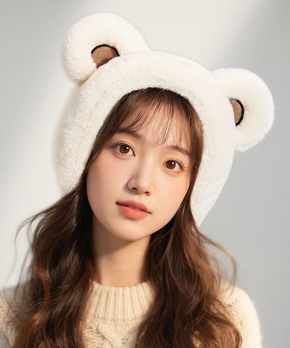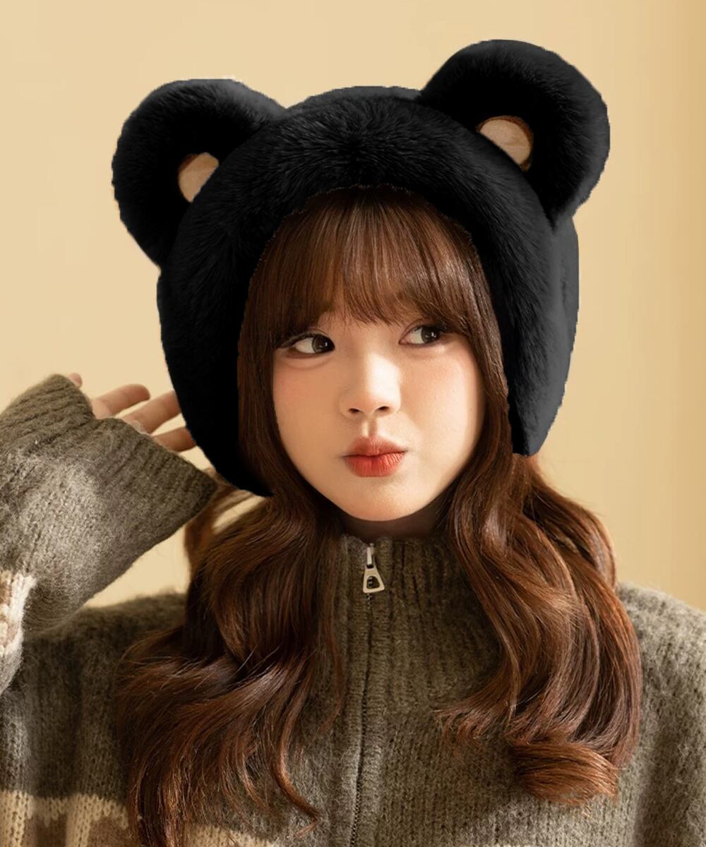 可愛らしいくま耳デザインで、秋冬のコーディネートに遊び心を添えるイヤーマフ。