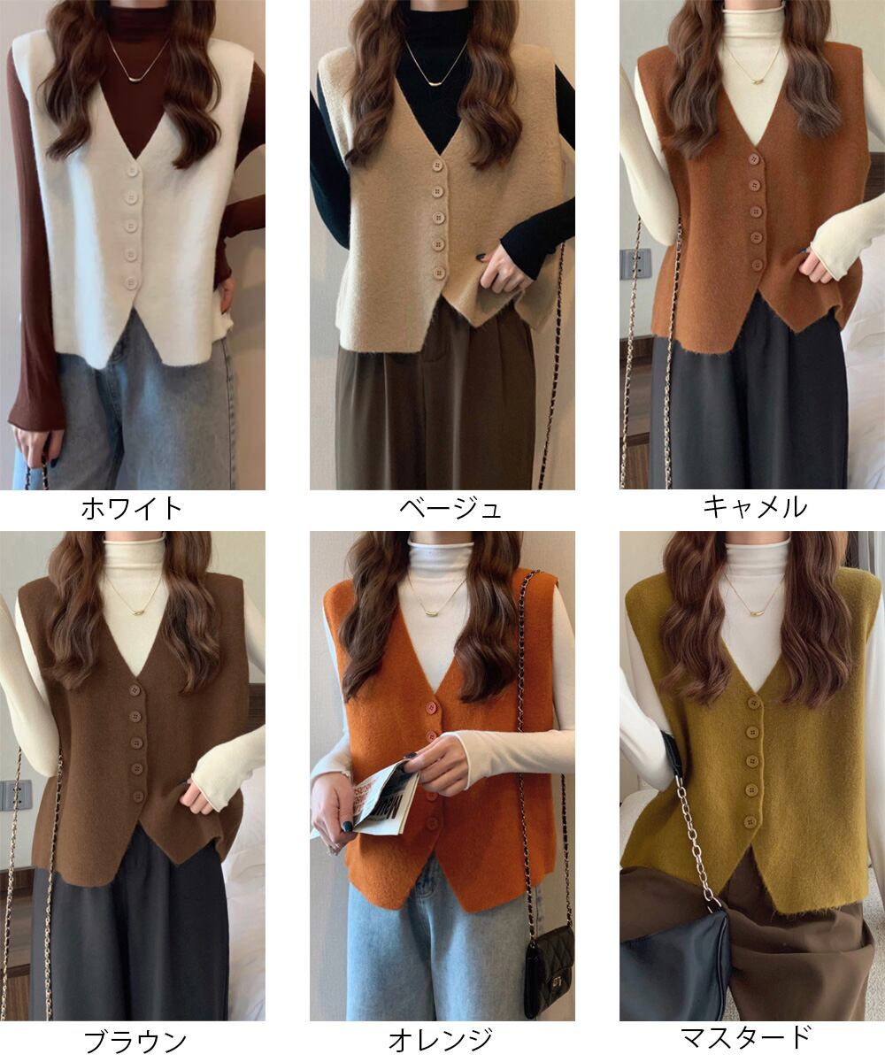 レディース Vネック ニットトップス 前開き チョッキ レイヤードベスト お洒落 ノースリーブ 着やせ 20代30代