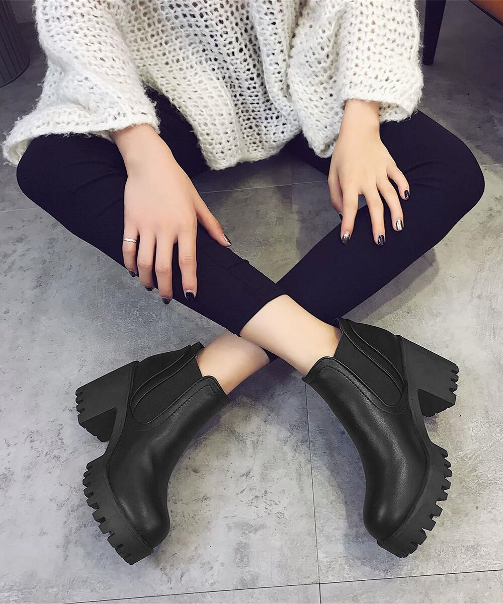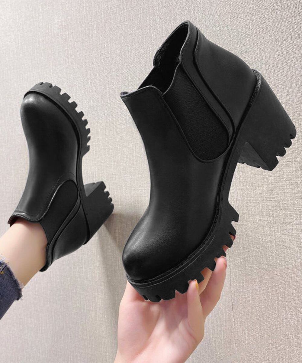レディース きれいめPUレザー厚底ショートブーツ 履きやすいアンクルブーツ 歩きやすい美脚脚長シューズ 韓国風通勤通学靴