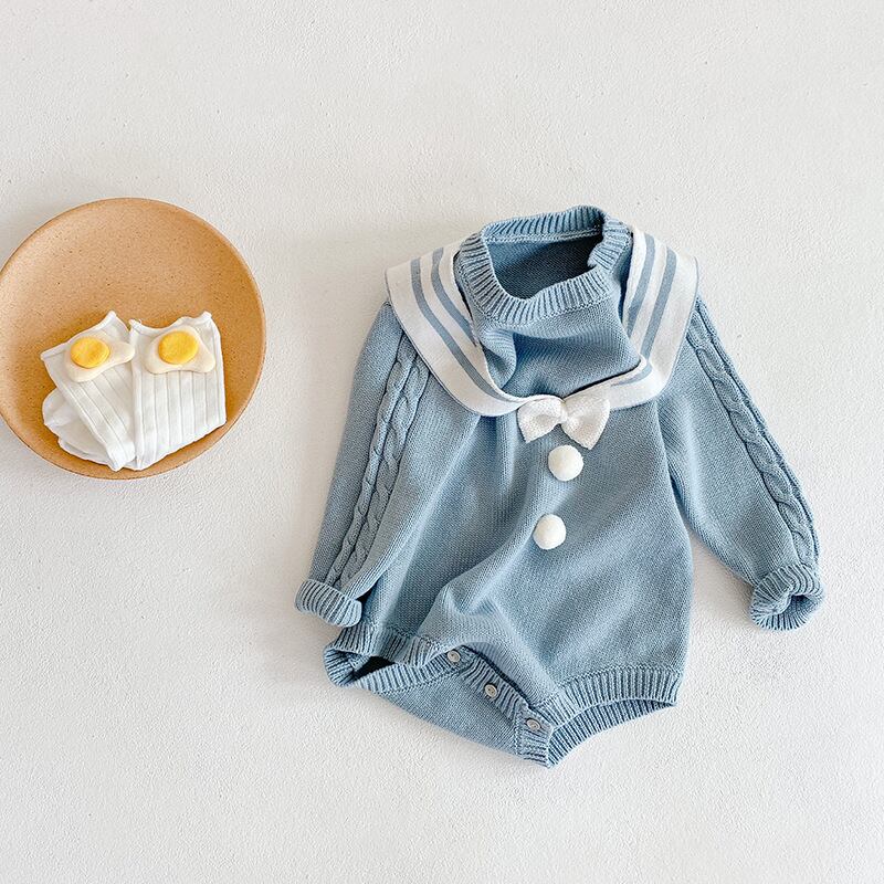 【海外からの取り寄せ】ins 秋新作 ベビー服 ニット セーラーカラー ロンパース 子供服 女の子 セーター 可愛い リボン #[ckd1095301_20800]【送料込み】【260115】