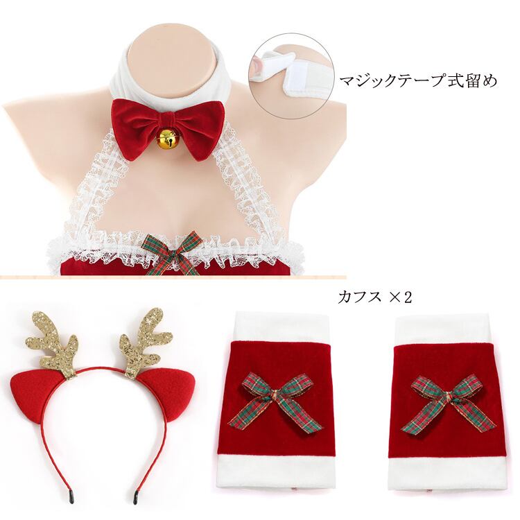 トナカイカチューシャ、ミニワンピース、Tバック、カフス×2