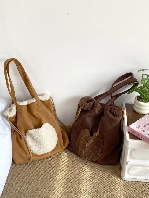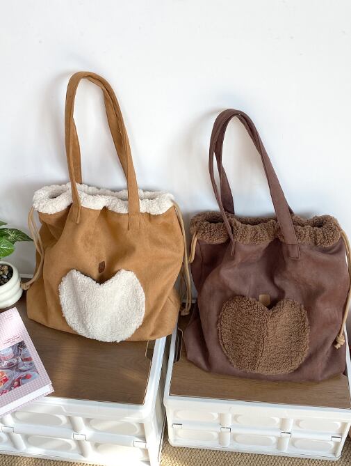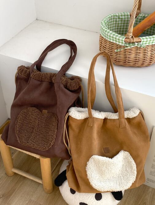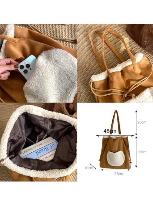 【海外からの取り寄せ】 新作 ボアトートバッグ アップル巾着バッグ 肩掛け もこもこ レトロ 大容量 カジュアル #[bag1887_14900]【送料込み】【251128】