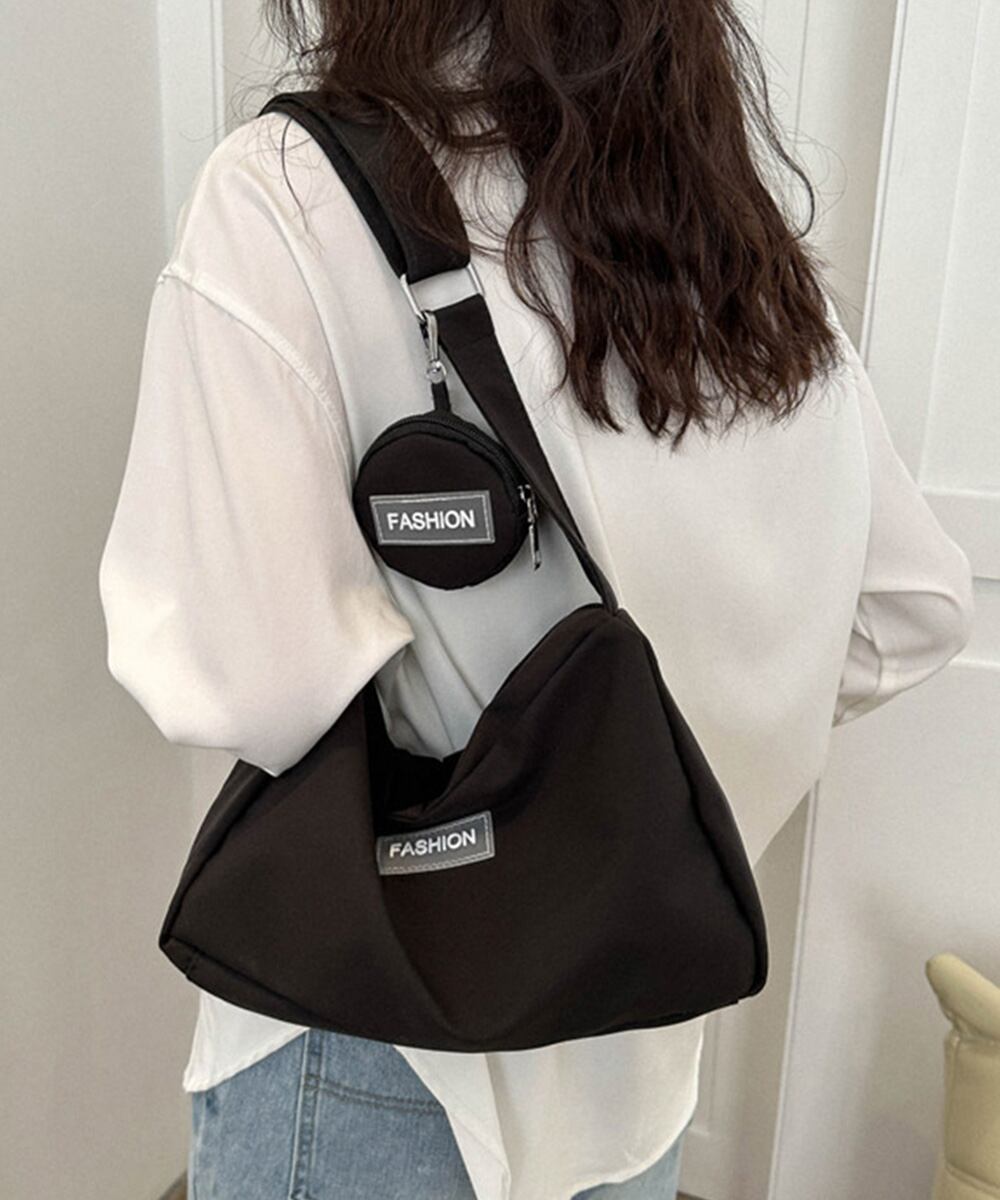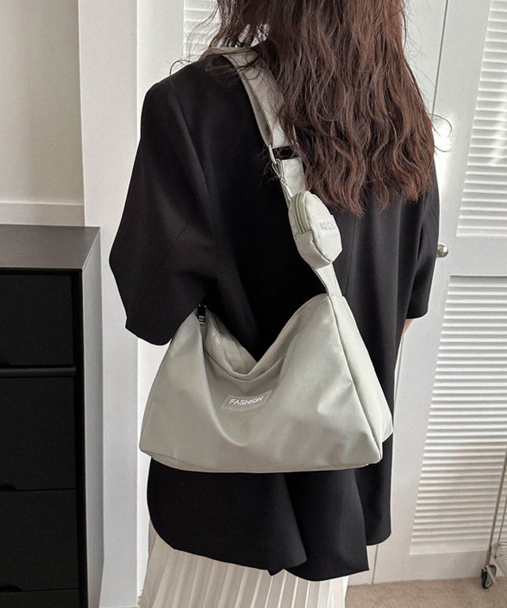 丈夫なナイロン素材で仕上げた軽量で実用的な大容量ショルダーバッグです