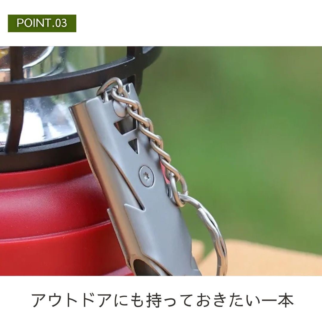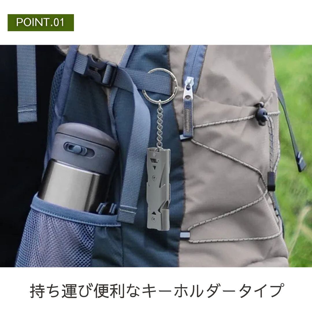 ポータブルホイッスルなので持ち運びも便利でなんと嬉しいリング付きです♪アウトドアを楽しみたい方、山に入るのが趣味の方、スポーツの際に使われるホイッスル、防犯用としてお子様に持たせておくのにもいいのではないでしょうか。