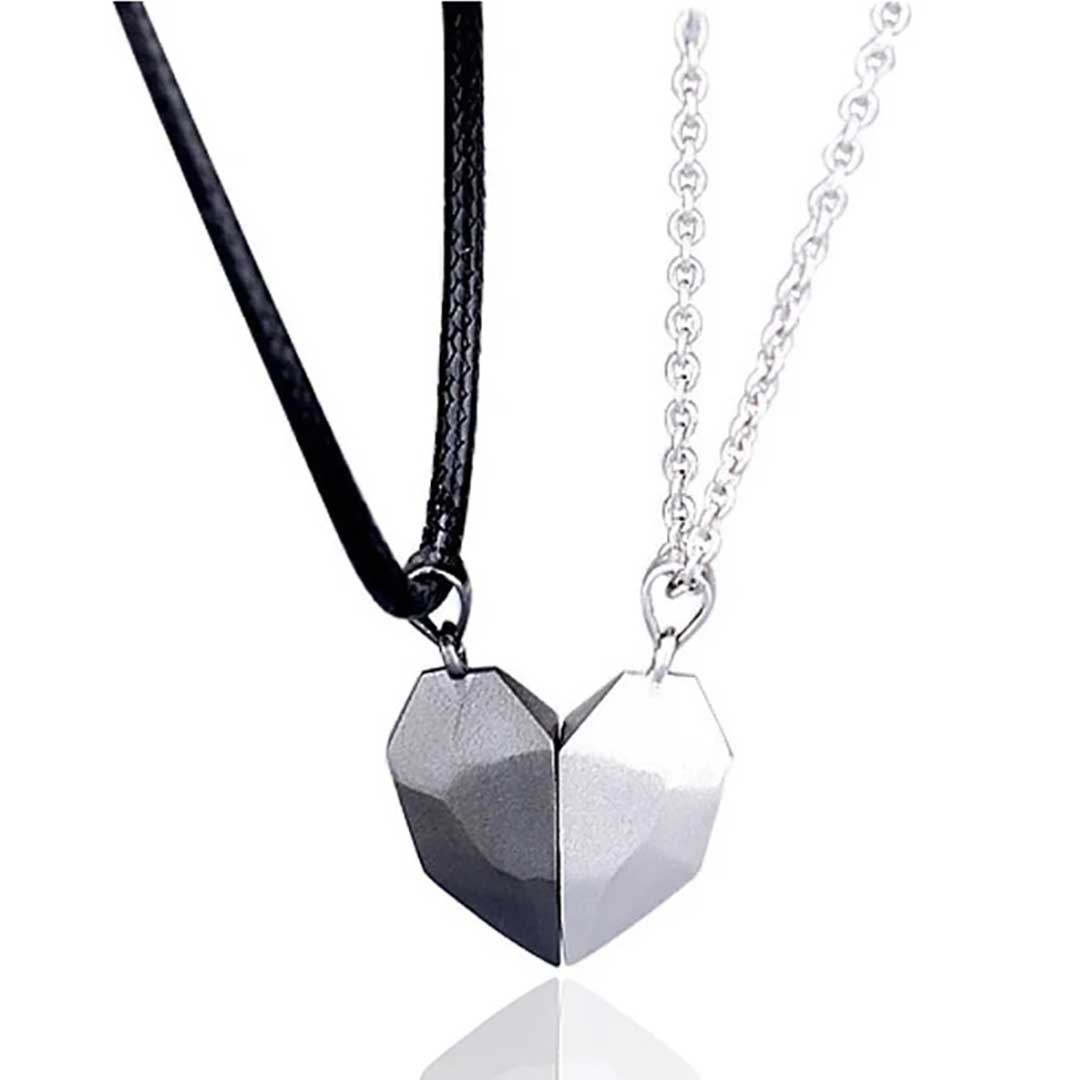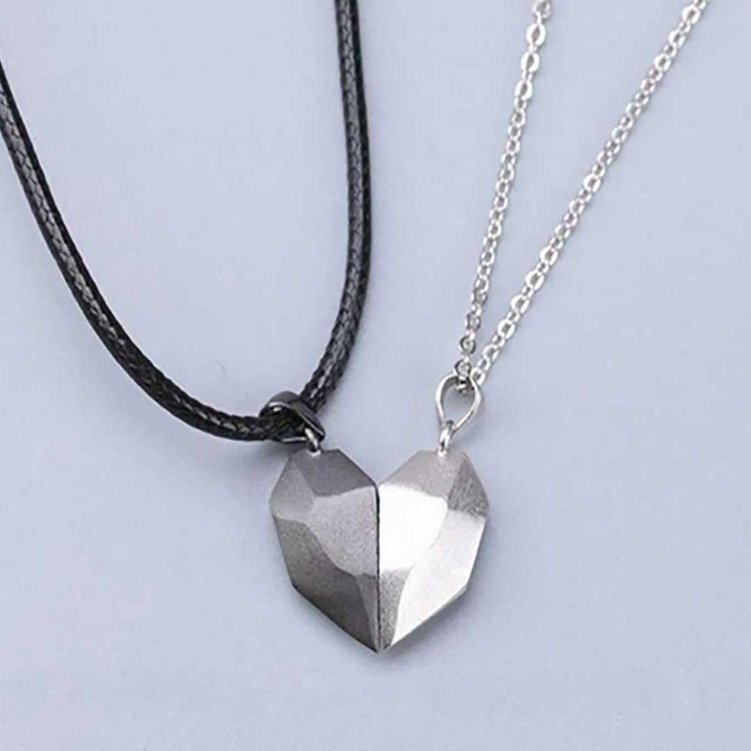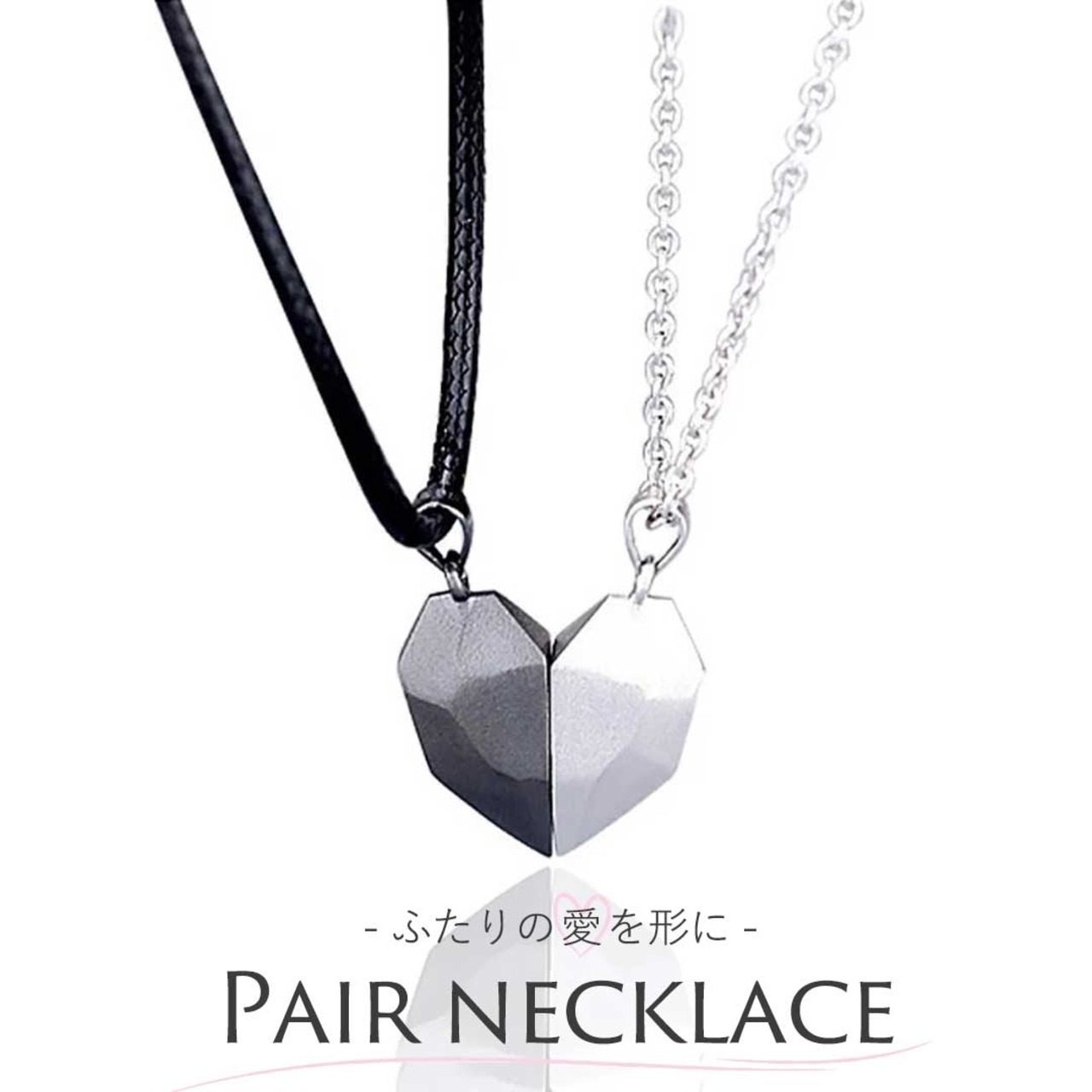 こちらのペアネックレスは、マグネット式になっています。お互いを近づけることで、惹かれ合いひとつのハートを作り出します。まるで、あなたとあなたのパートナーとの心の繋がりを表しているようですね