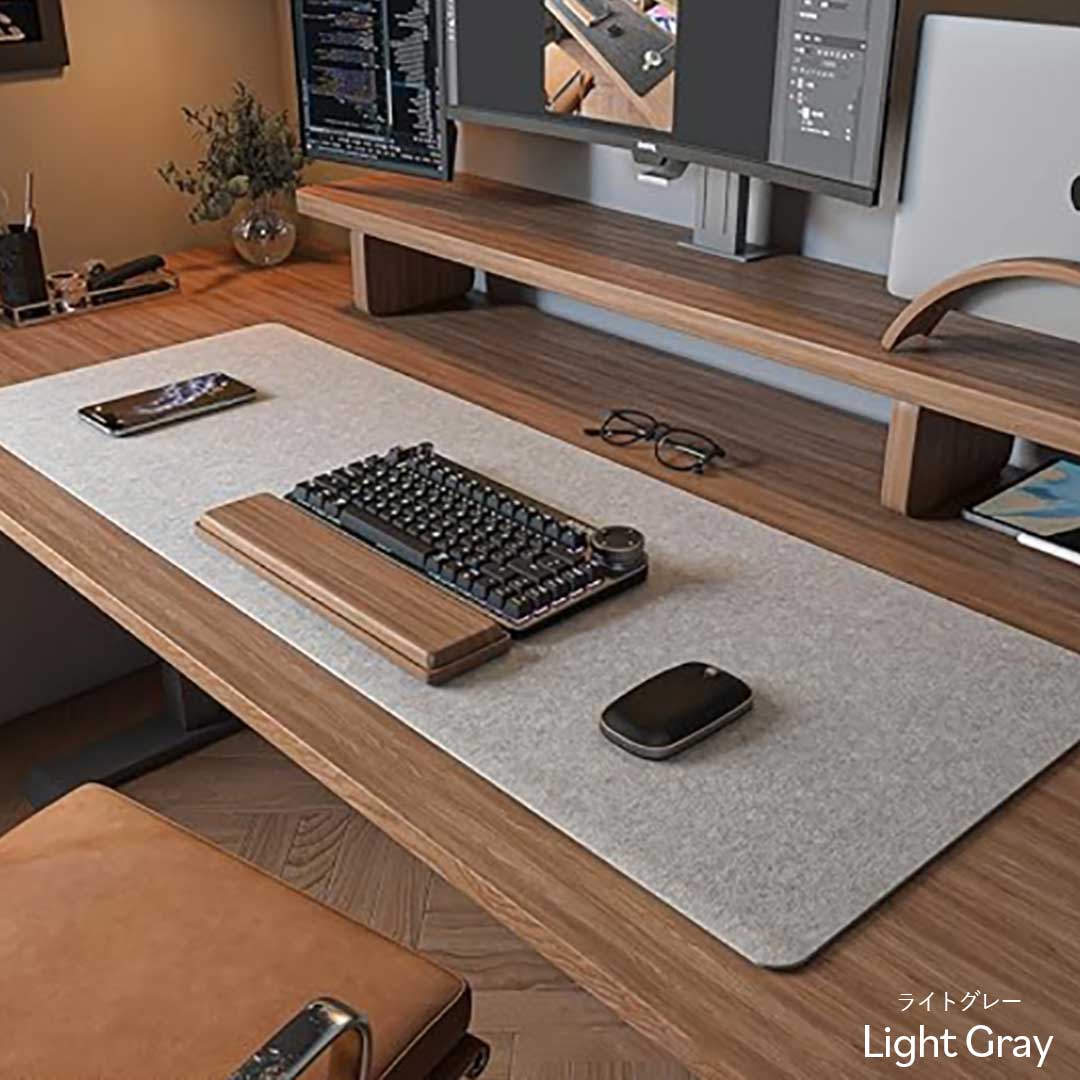 デスク上に設置して、快適な作業環境を作るおしゃれなフェルト(布製)デスクマットでデスクへの汚れ防止、マウスの操作音軽減、キーボードのズレを防いで快適なPC生活を送りいただけます