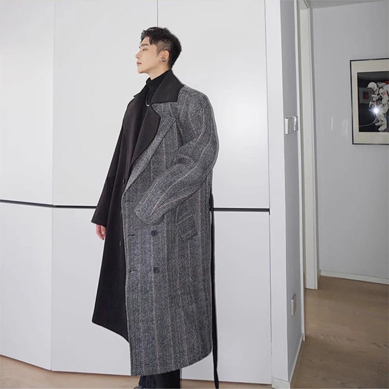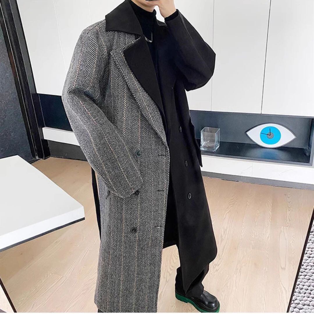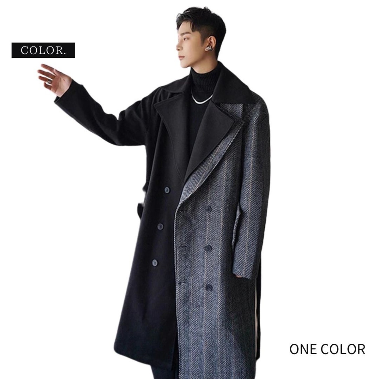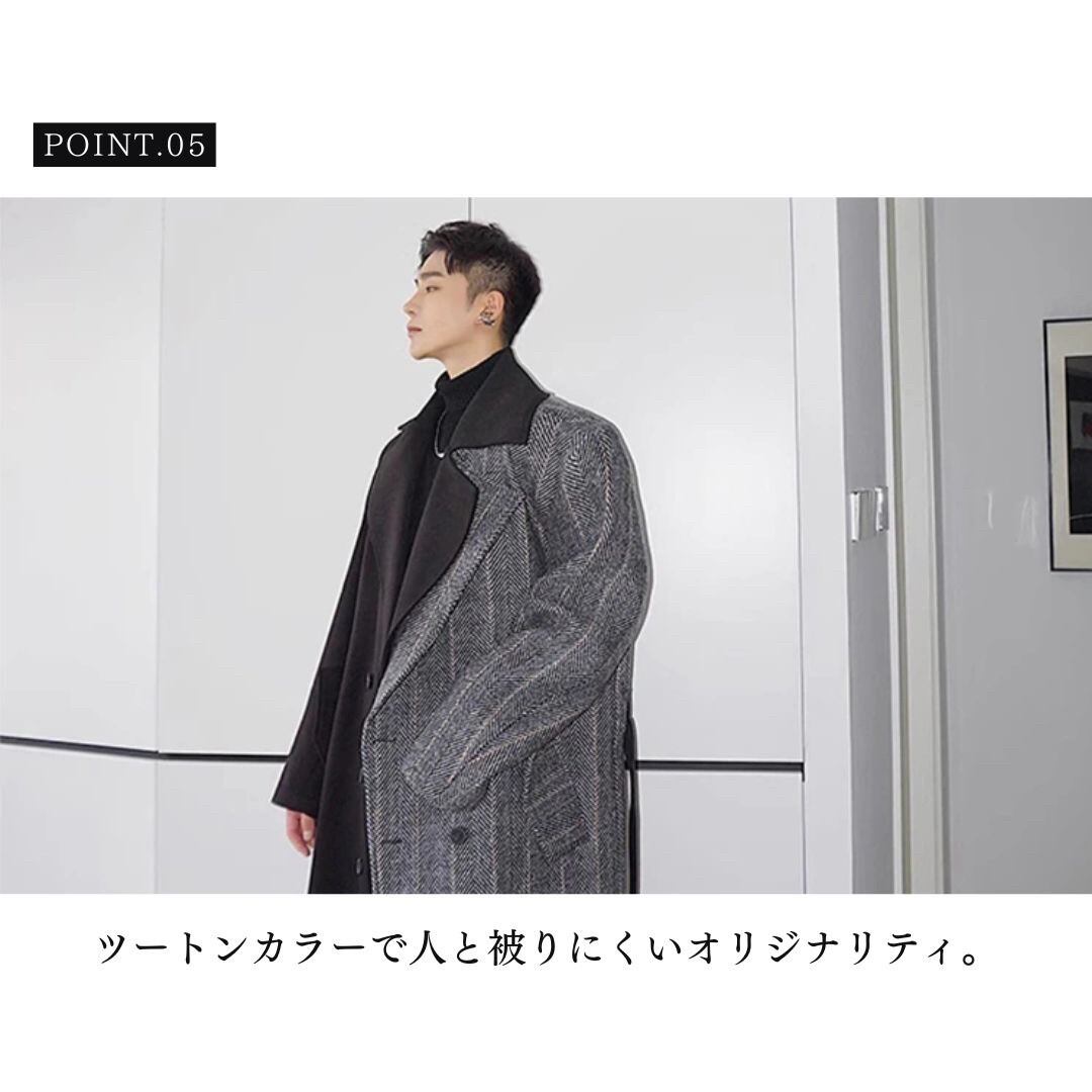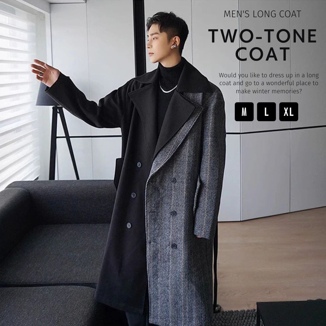 【在庫限り】ロングコート ツートン ブラックグレー アウター スマート シック トレンチ Pコート #[20231127-4351_145200]【送料込み】【251111】