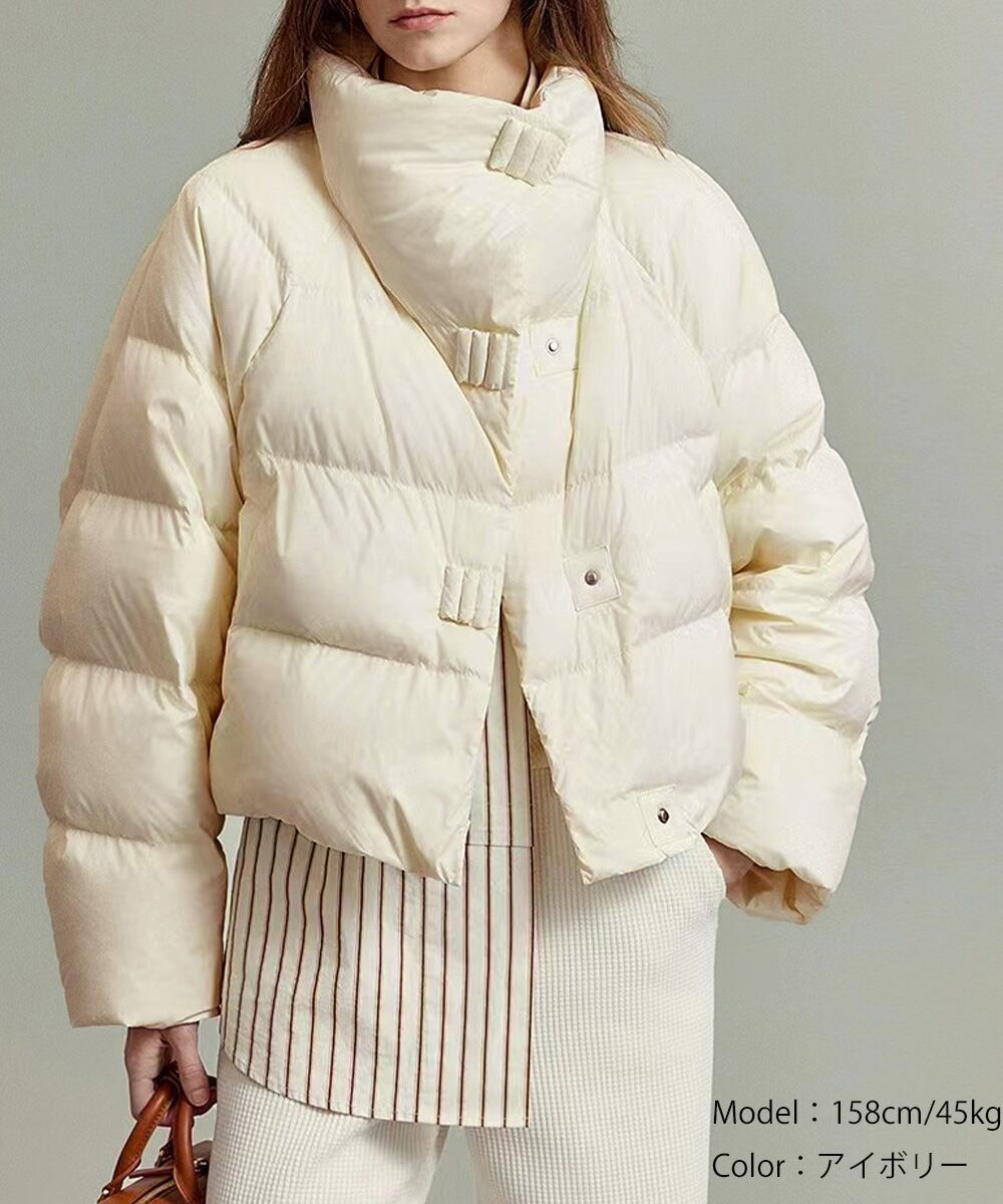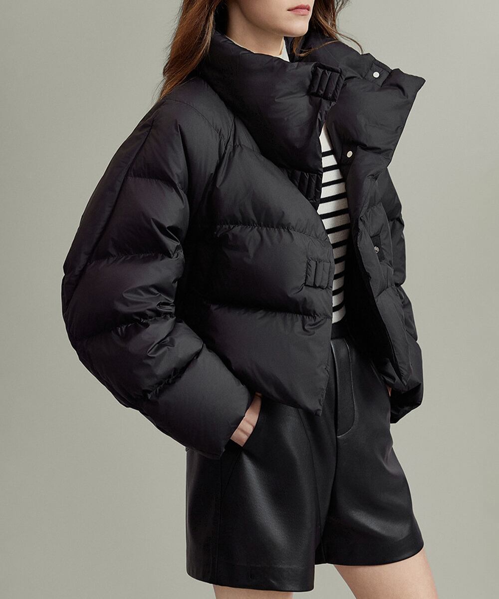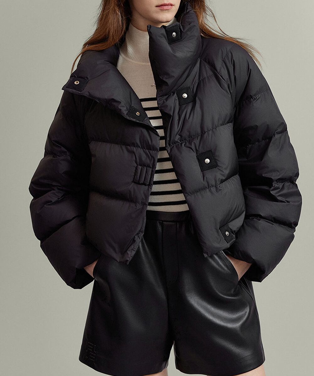 季節感たっぷりの、ボリューム感のあるスタンドカラーのエコダウンショートブルゾン。