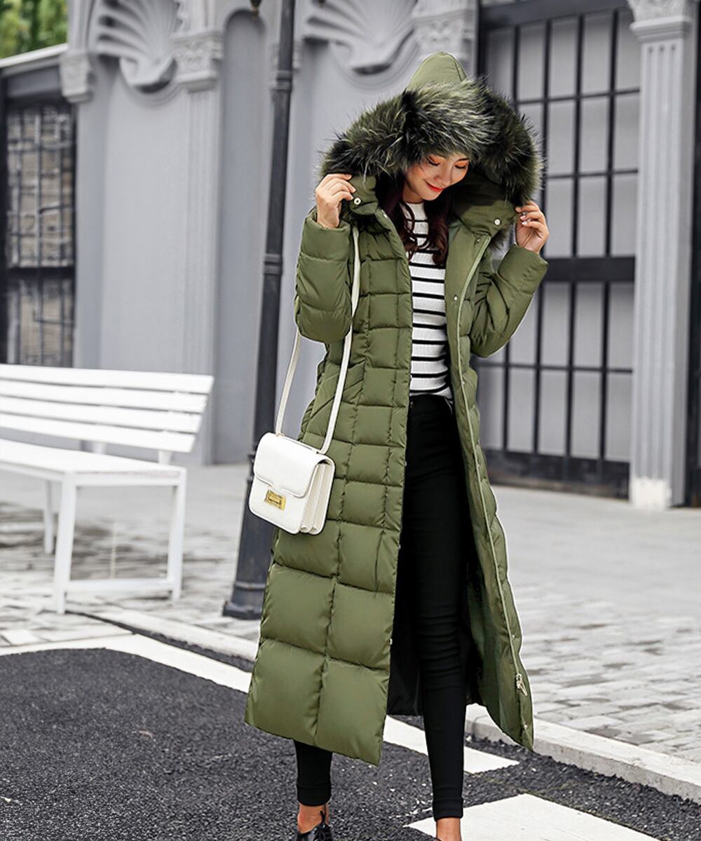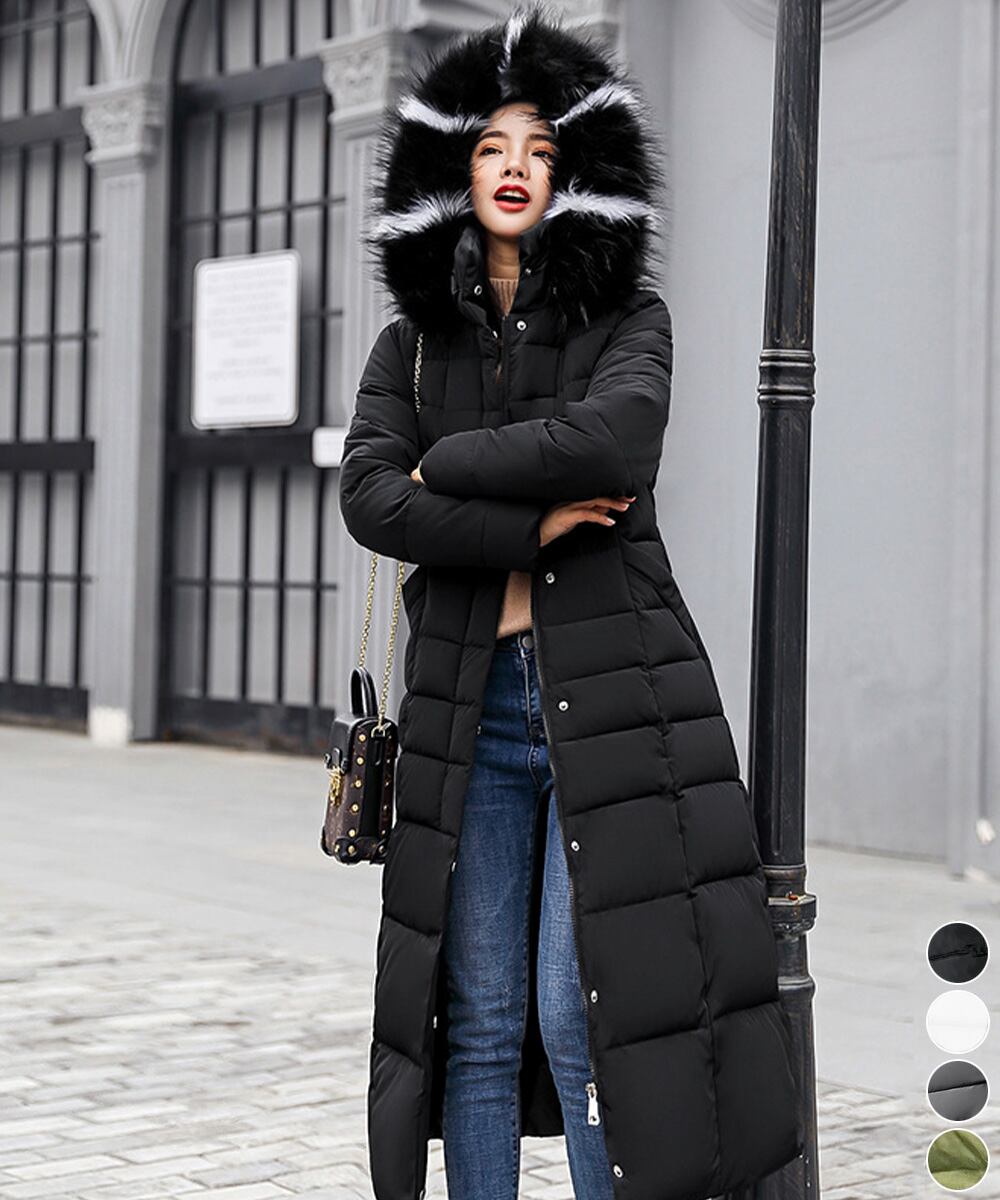 レディース ボリュームファーフード付きロングコート 大人きれいめ 防風防寒アウターあったか中綿コートエコダウンジャケット