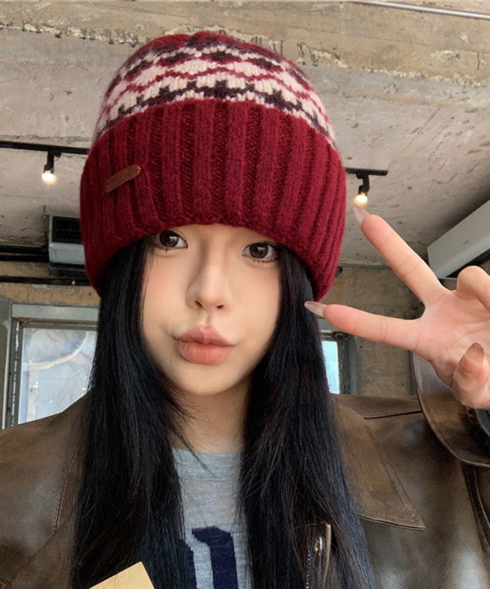 【日本倉庫からの発送】 フェアアイル柄ニット帽防寒ニットキャップ #[87HEIMAI-001_16300]【送料込み】【251210】