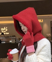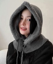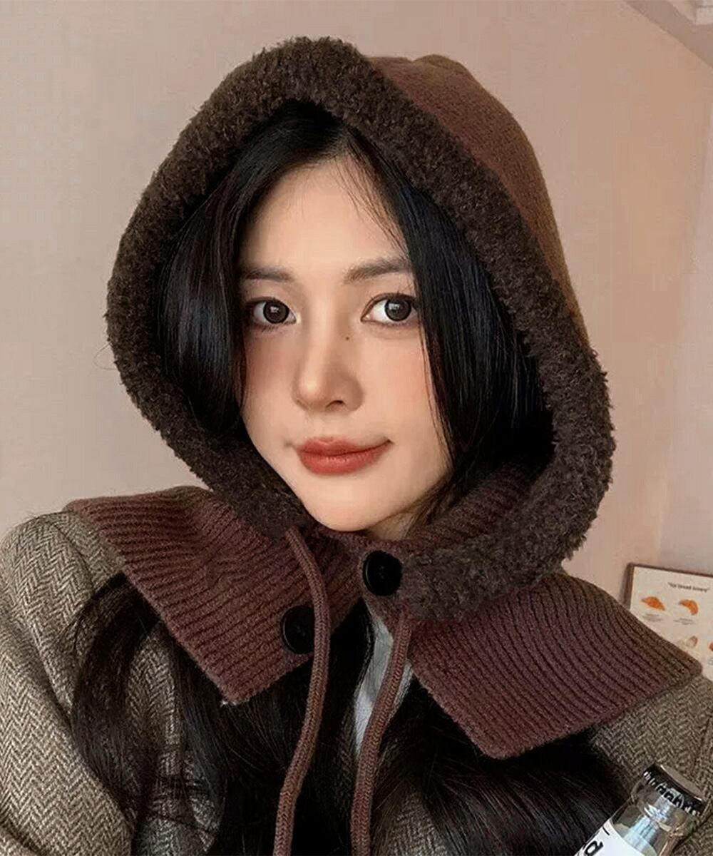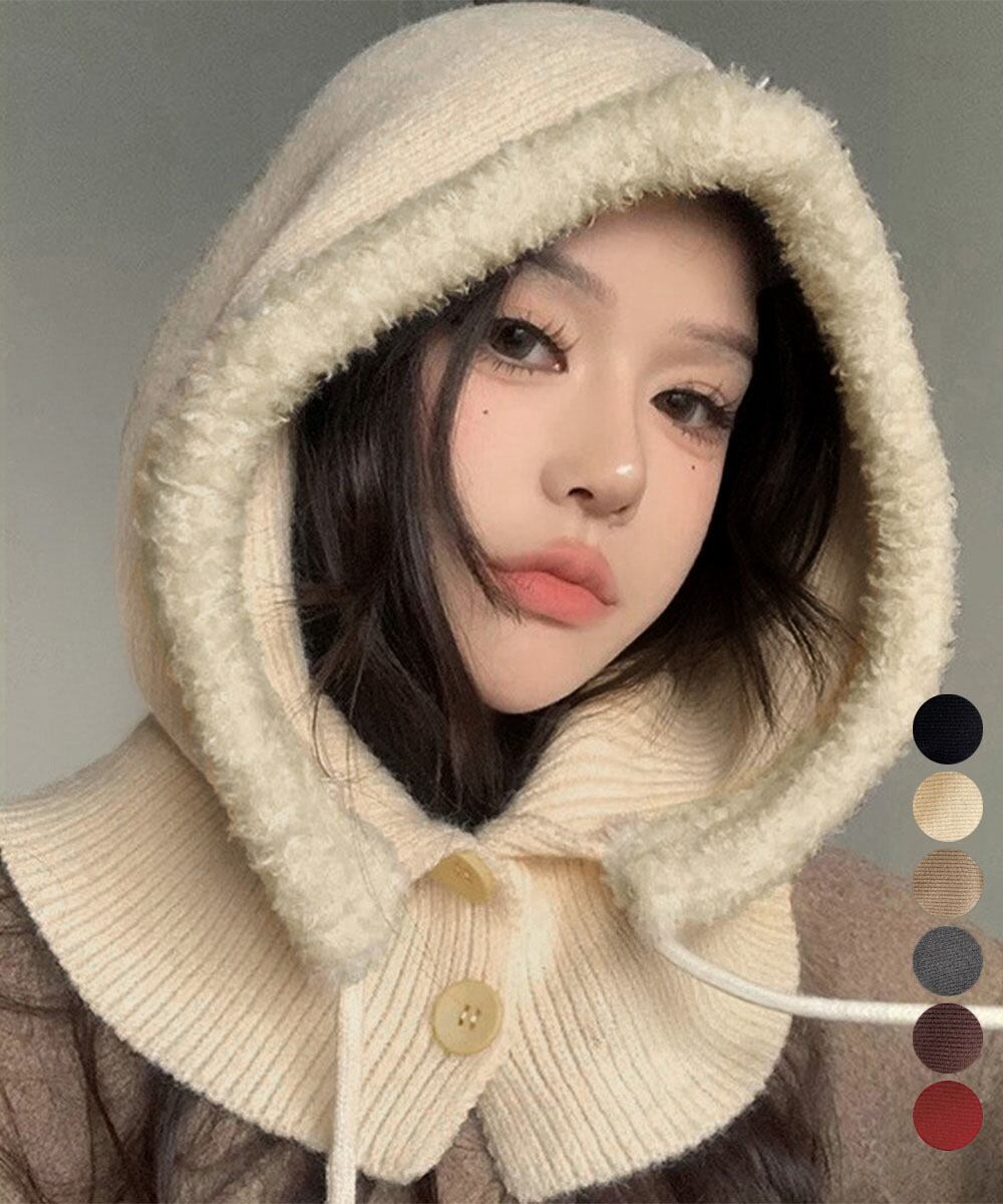 暖かいフードウォーマー ボア防寒帽子耳当て付き 韓国風小顔帽子 可愛いペアルック帽子 防風ニットキャップ フードマフラー