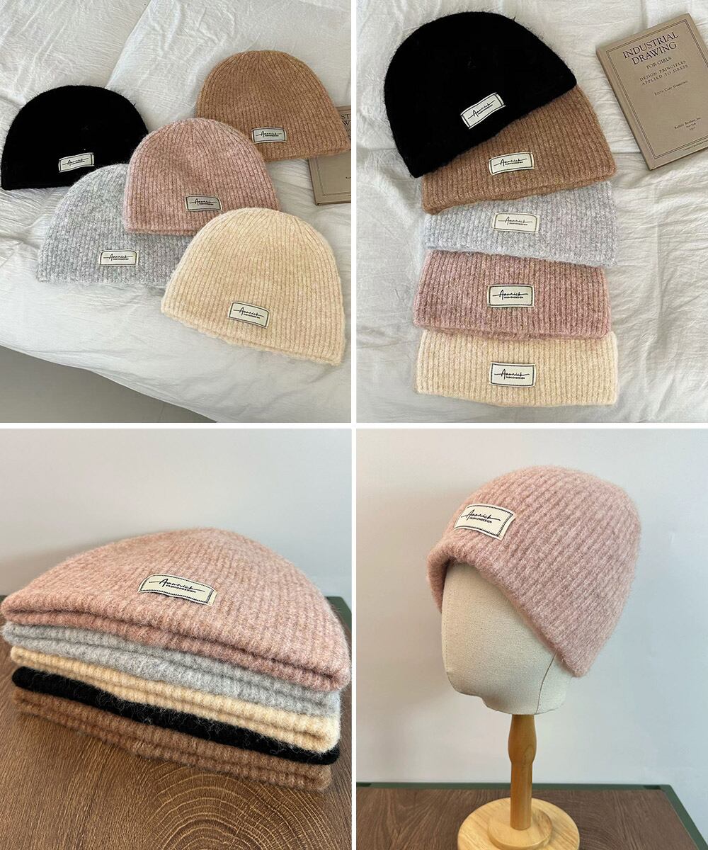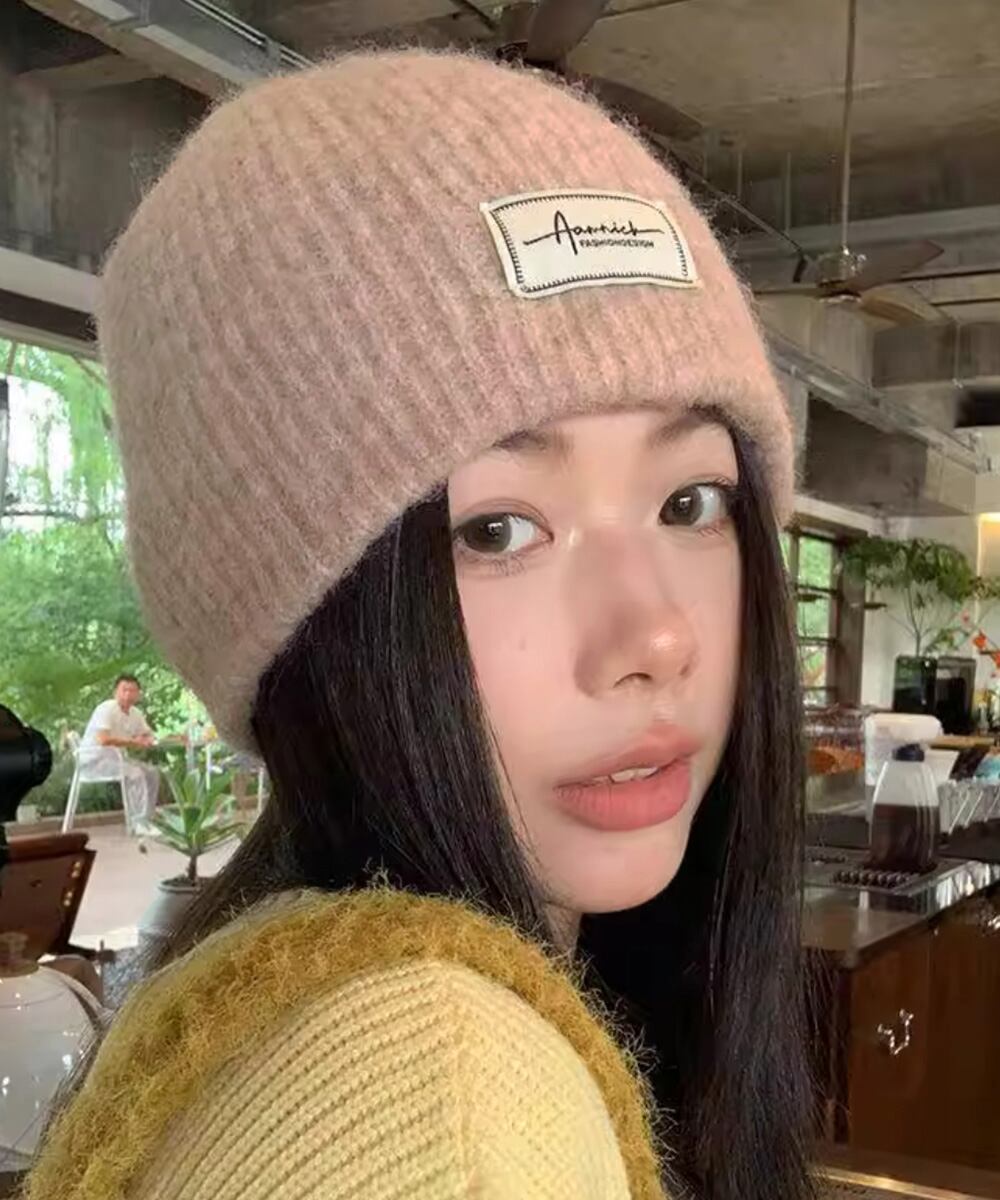 おしゃれ リブニットビーニー ワンポイント秋冬帽子 防風防寒 小顔ぼうし あったか 韓国風 お出掛け防寒グッズワッチ帽子