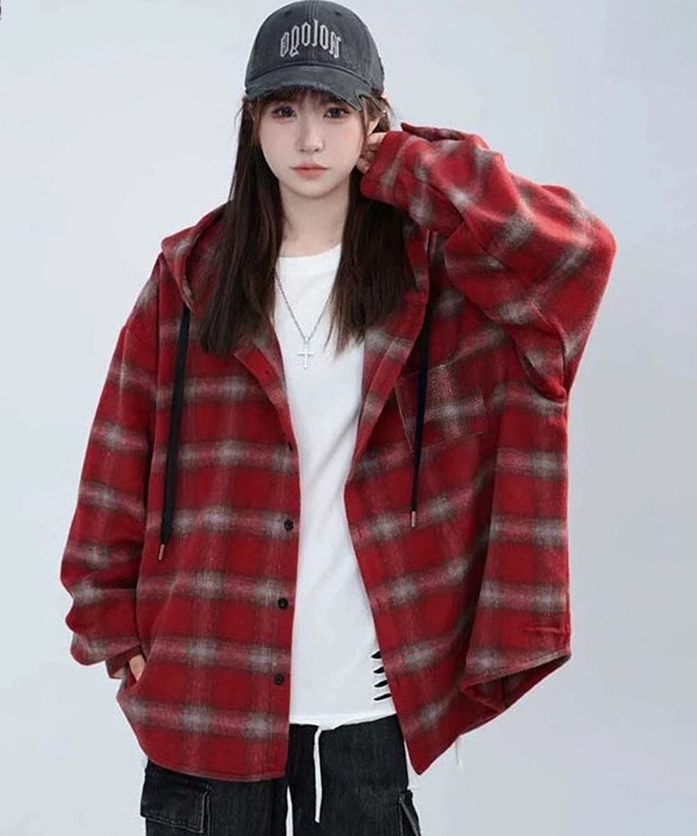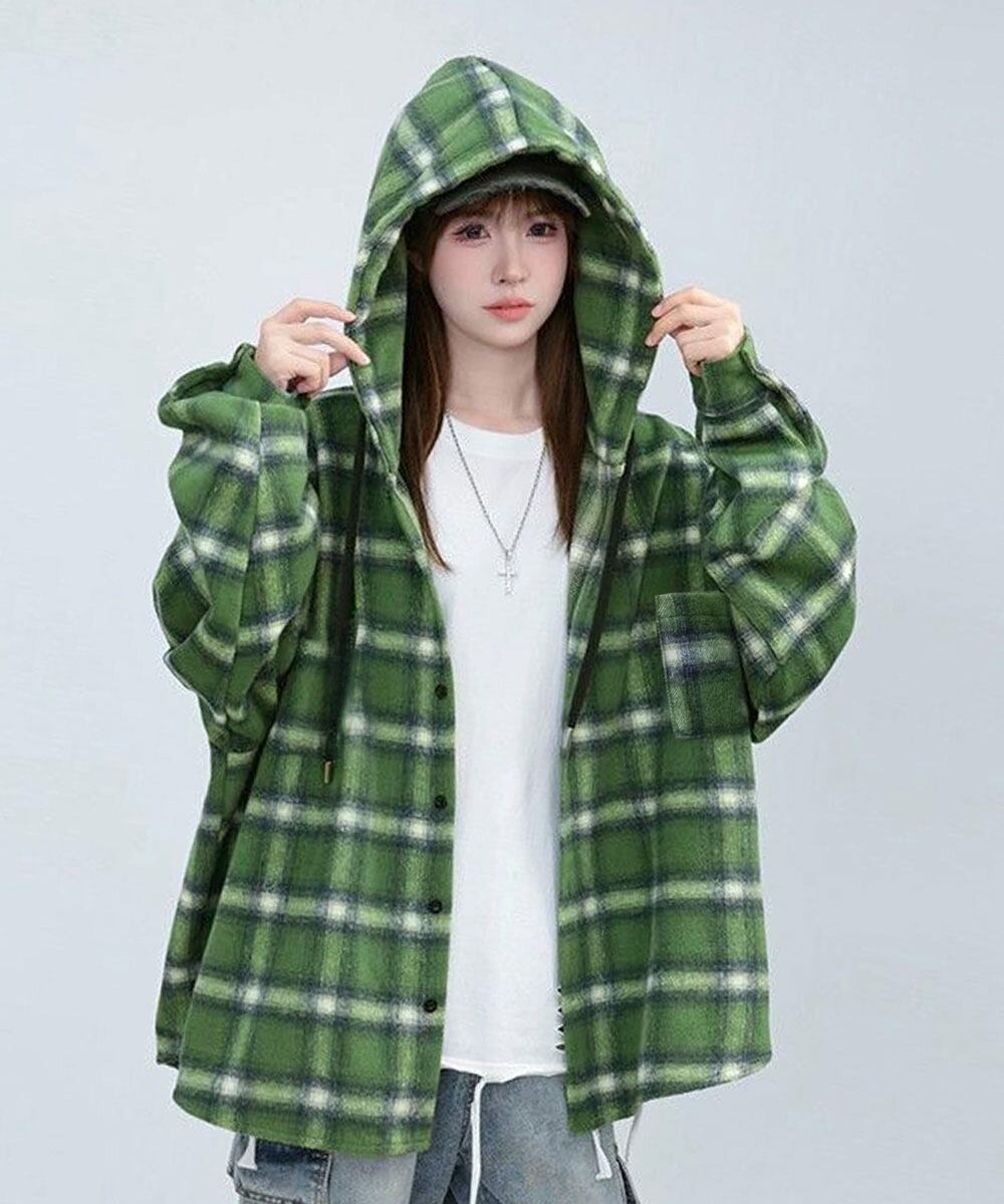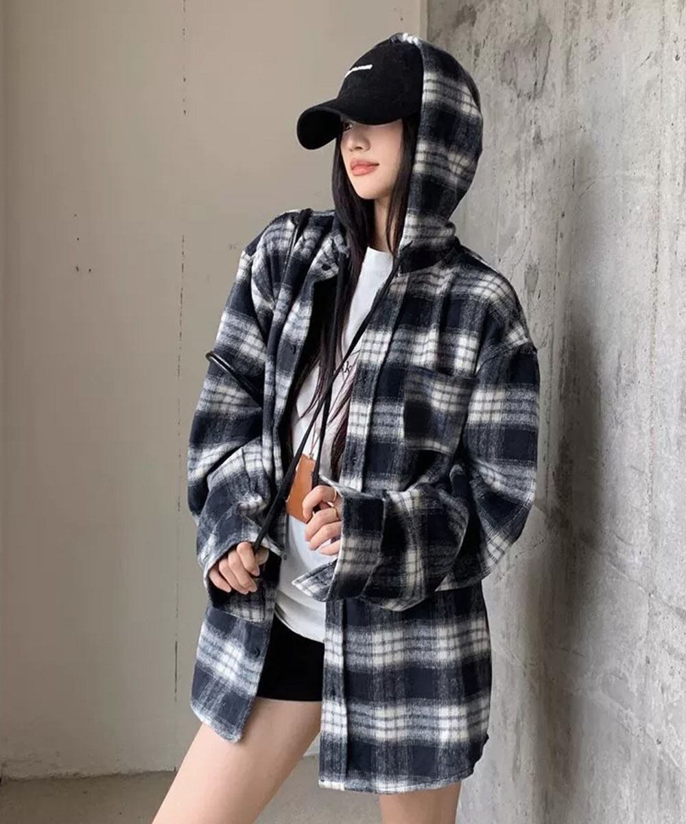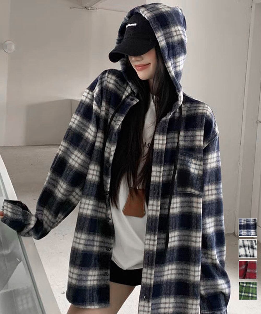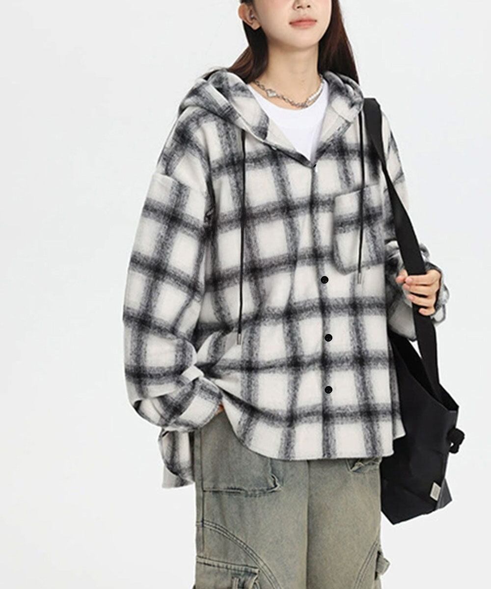 【日本倉庫からの発送】 チェック柄フーデッドシャツレディース秋冬 #[83YIGULI-001_28300]【送料込み】【251210】