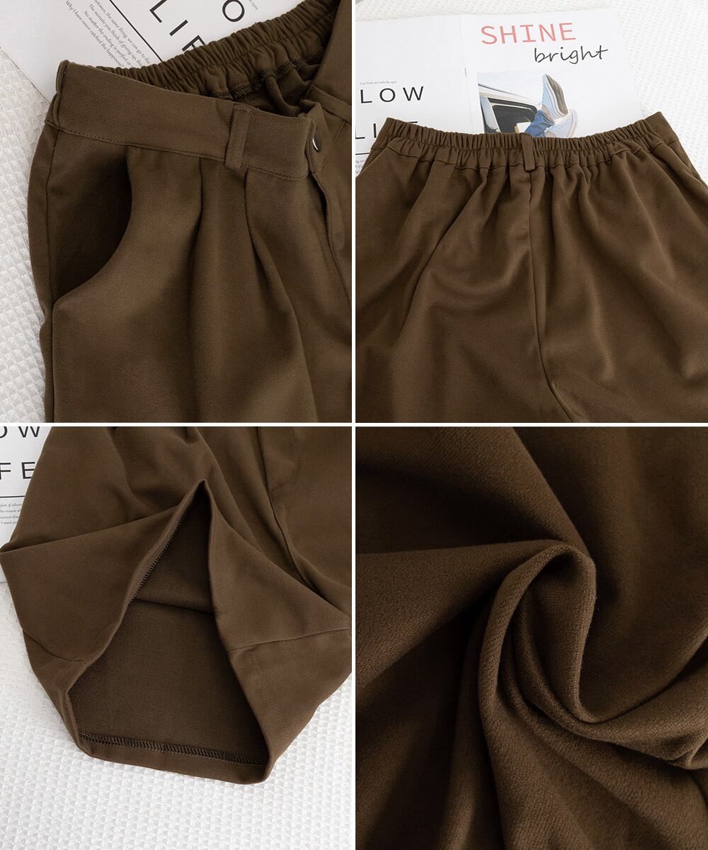 オフィスカジュアル ウールライク短パン 体型カバーボトムス
