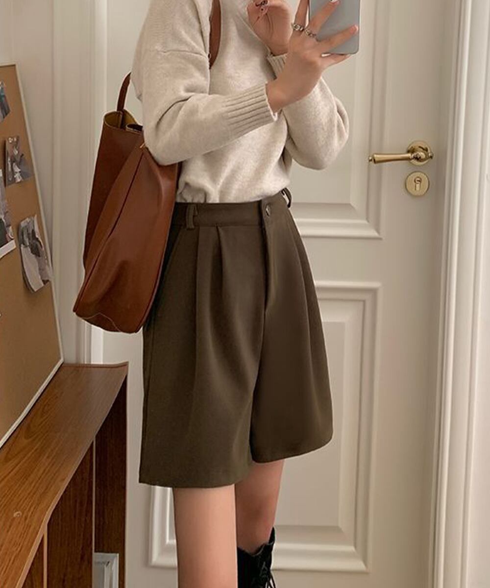【日本倉庫からの発送】 タックショートパンツウール風ワイドパンツ #[80YIGL-011_18600]【送料込み】【251210】