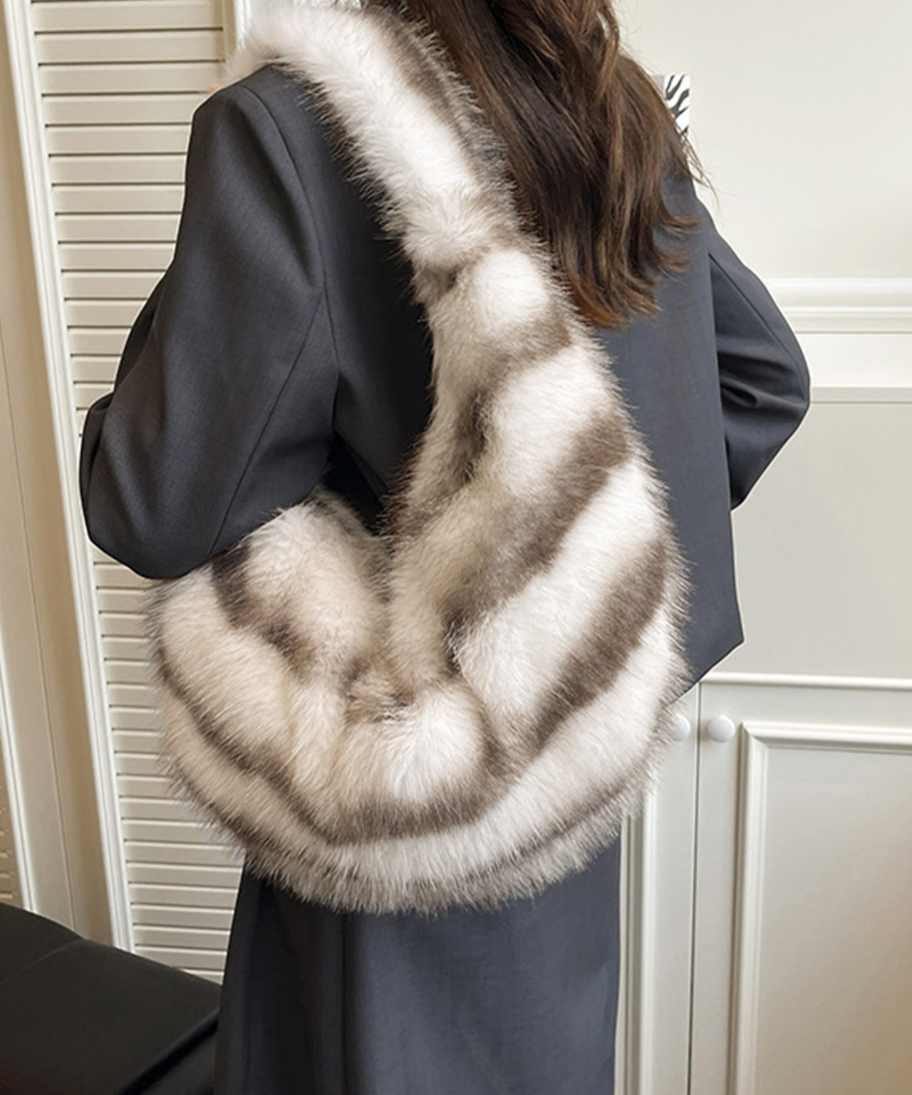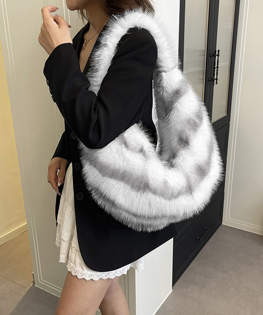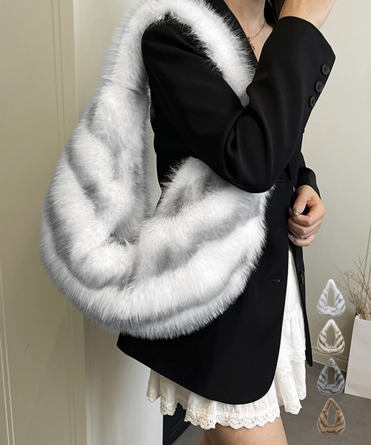 【日本倉庫からの発送】 ハーフムーンファーショルダートートバッグ #[87XIUFENG-004_26100]【送料込み】【251129】