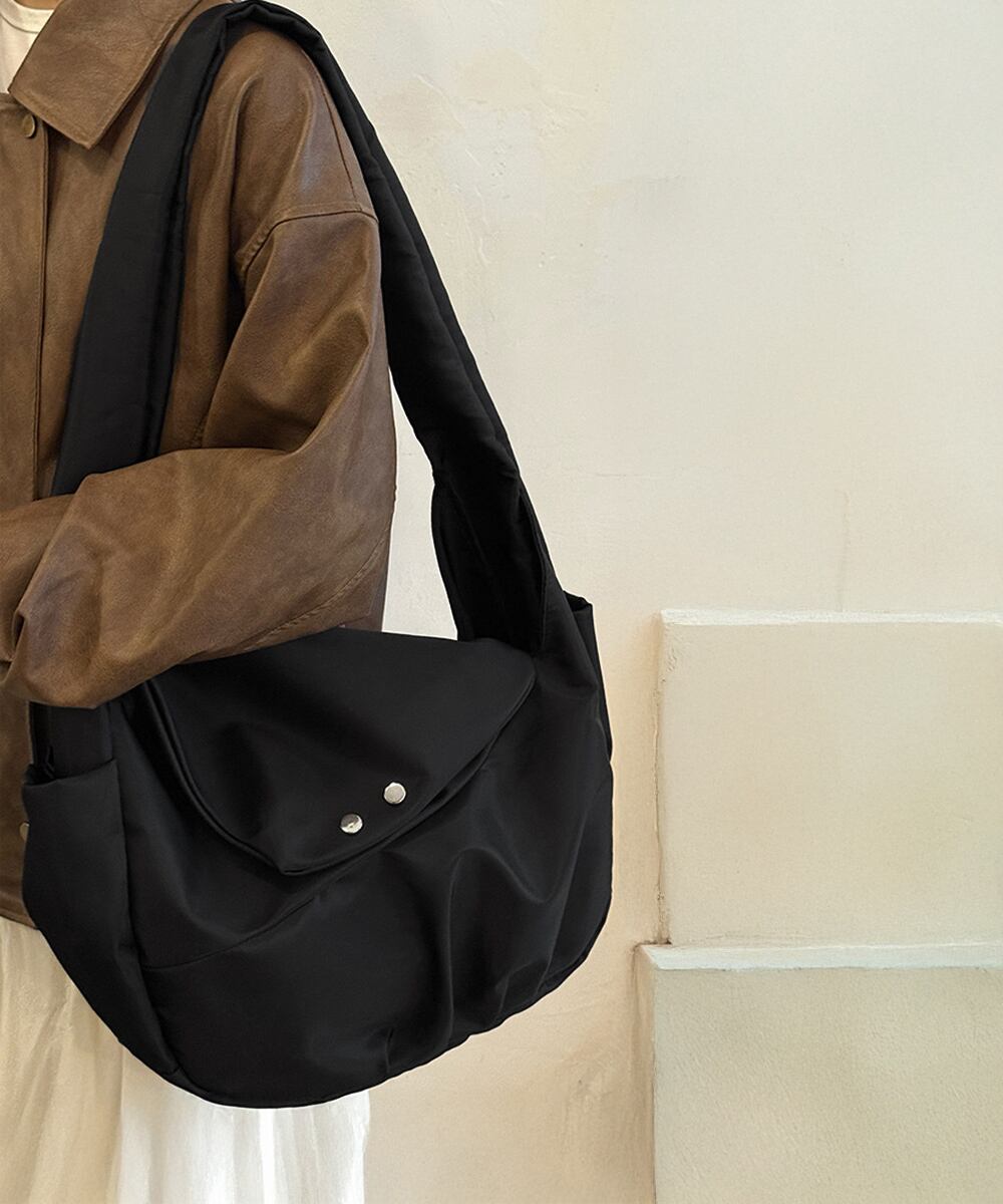 通勤や通学にぴったりで、たっぷり収納できるショルダーバッグ。