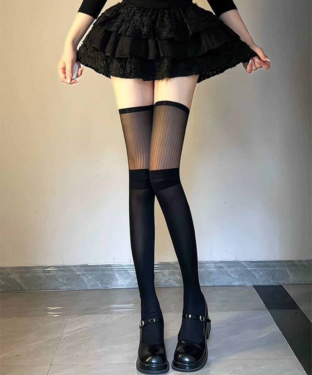 ニーハイ ソックス おしゃれソックス黒 サイハイソックス