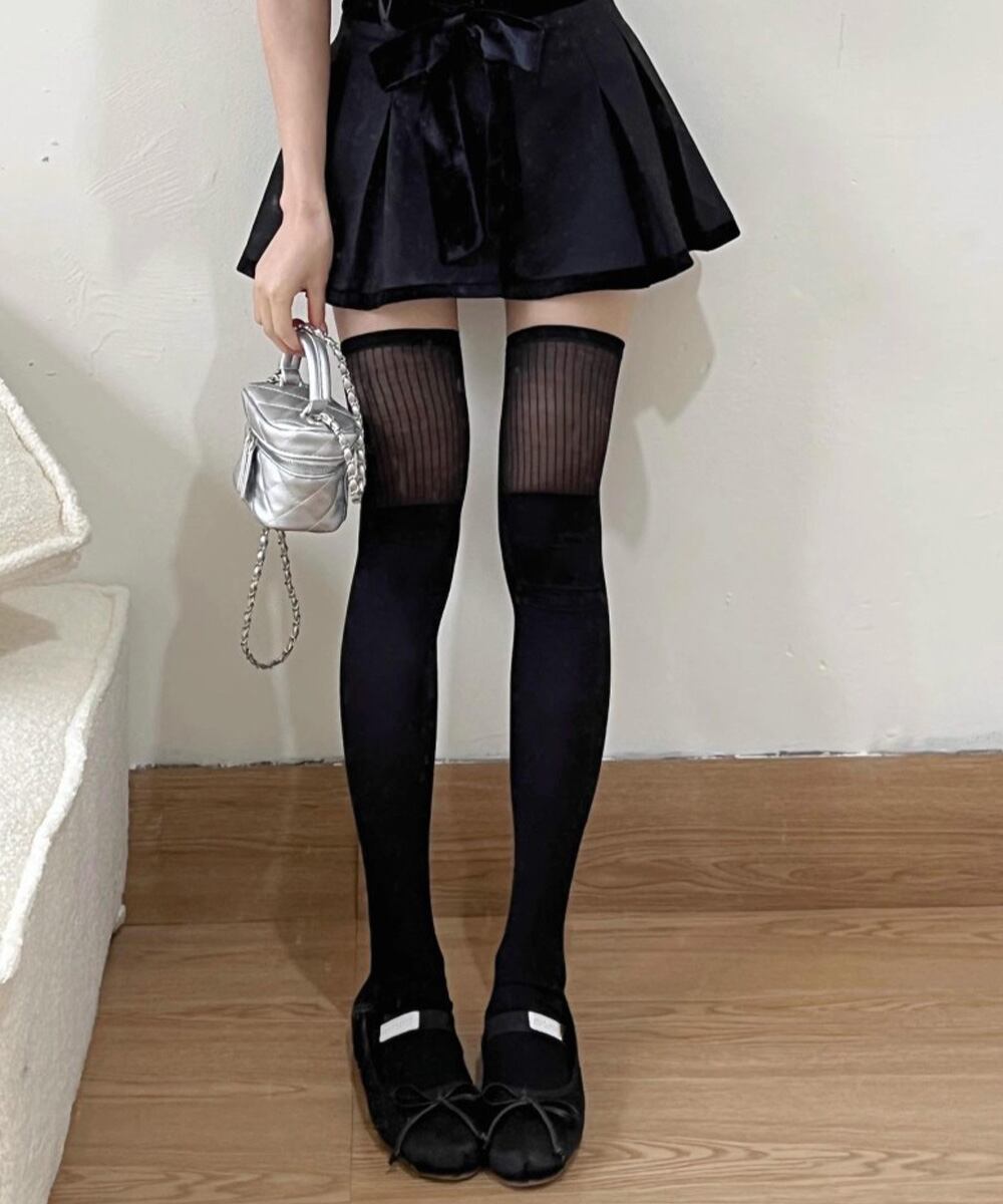 美脚脚長ソックス 大人可愛いハイソックス 韓国風 無地ソックス 膝上丈靴下 春秋 通勤通学 婦人靴下 薄手シアーソックス