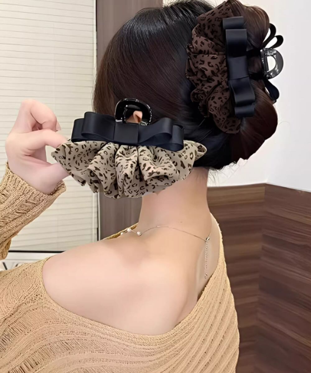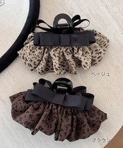 落ち着いたレオパード柄とリボンの組み合わせが魅力のバンスクリップ。