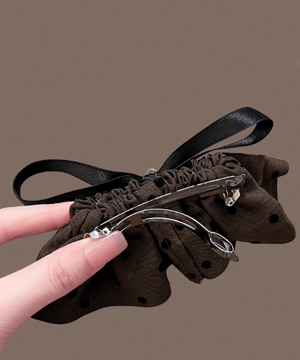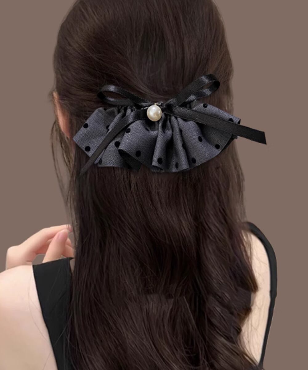 【日本倉庫からの発送】 ドット柄 フリルリボン ヘアクリップ上品 #[88CXH-135_6400]【送料込み】【251123】