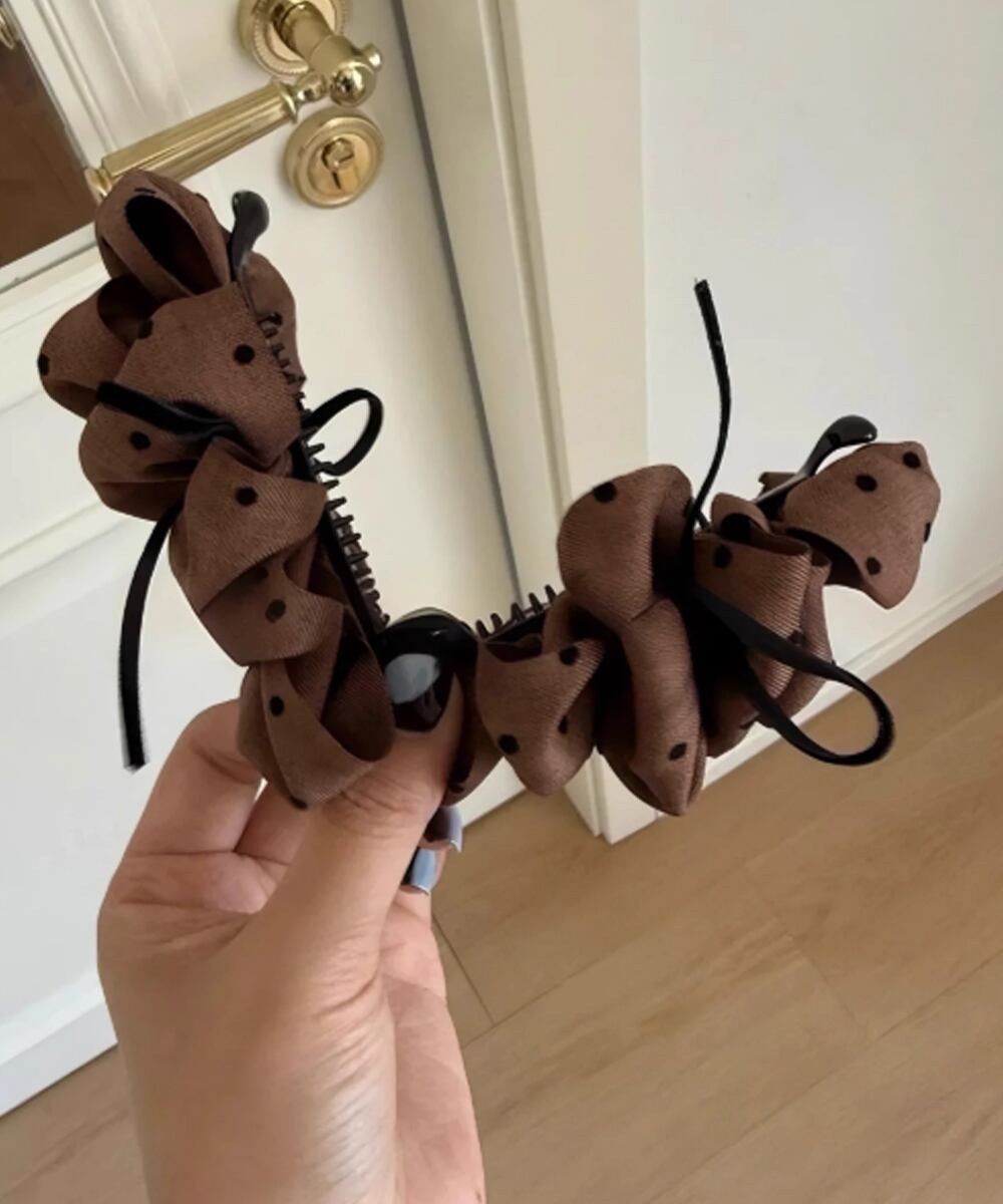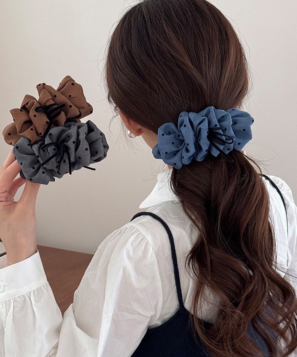 【日本倉庫からの発送】 ドット柄 フリルリボン バナナクリップ #[88CXH-134_6600]【送料込み】【251123】