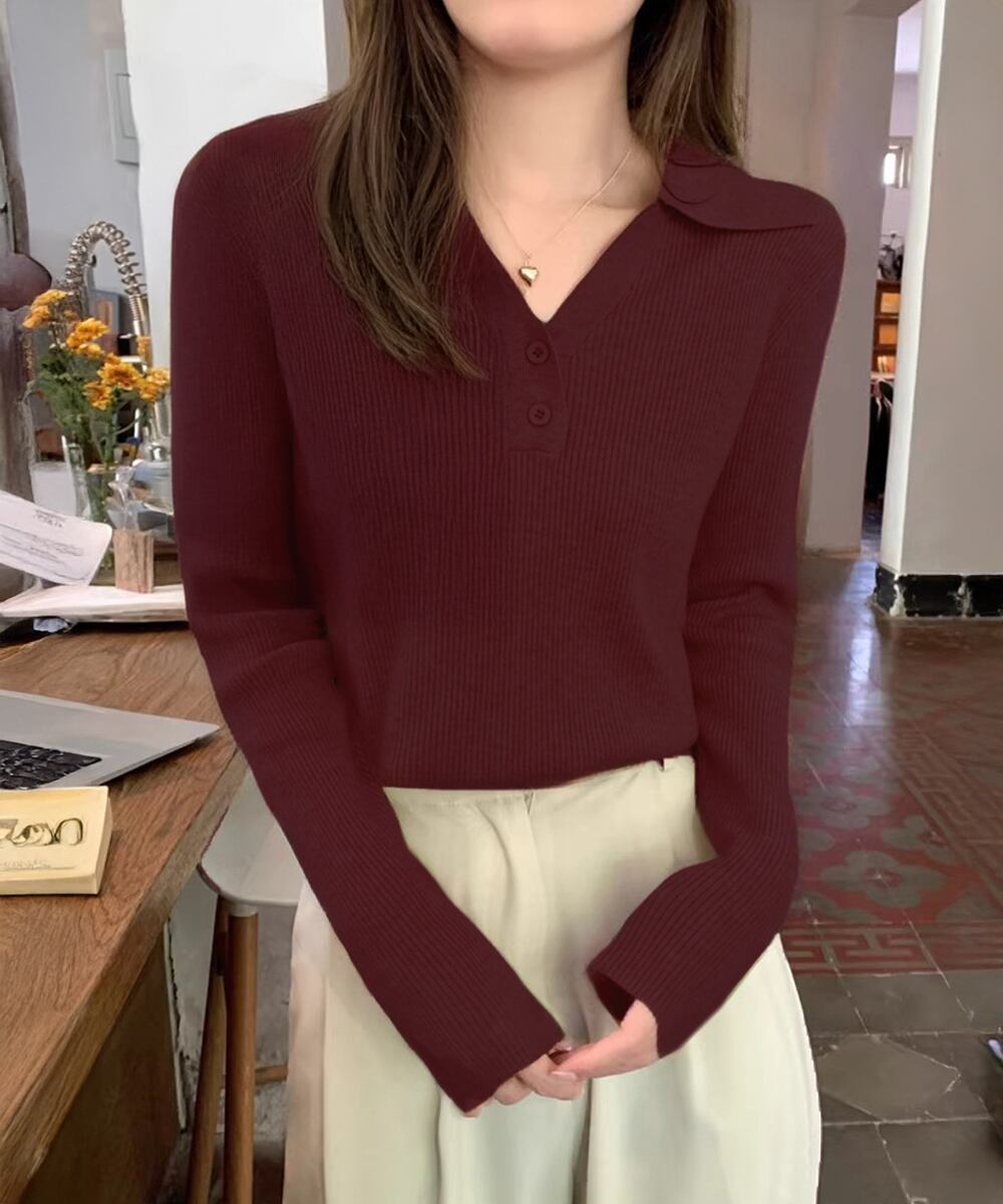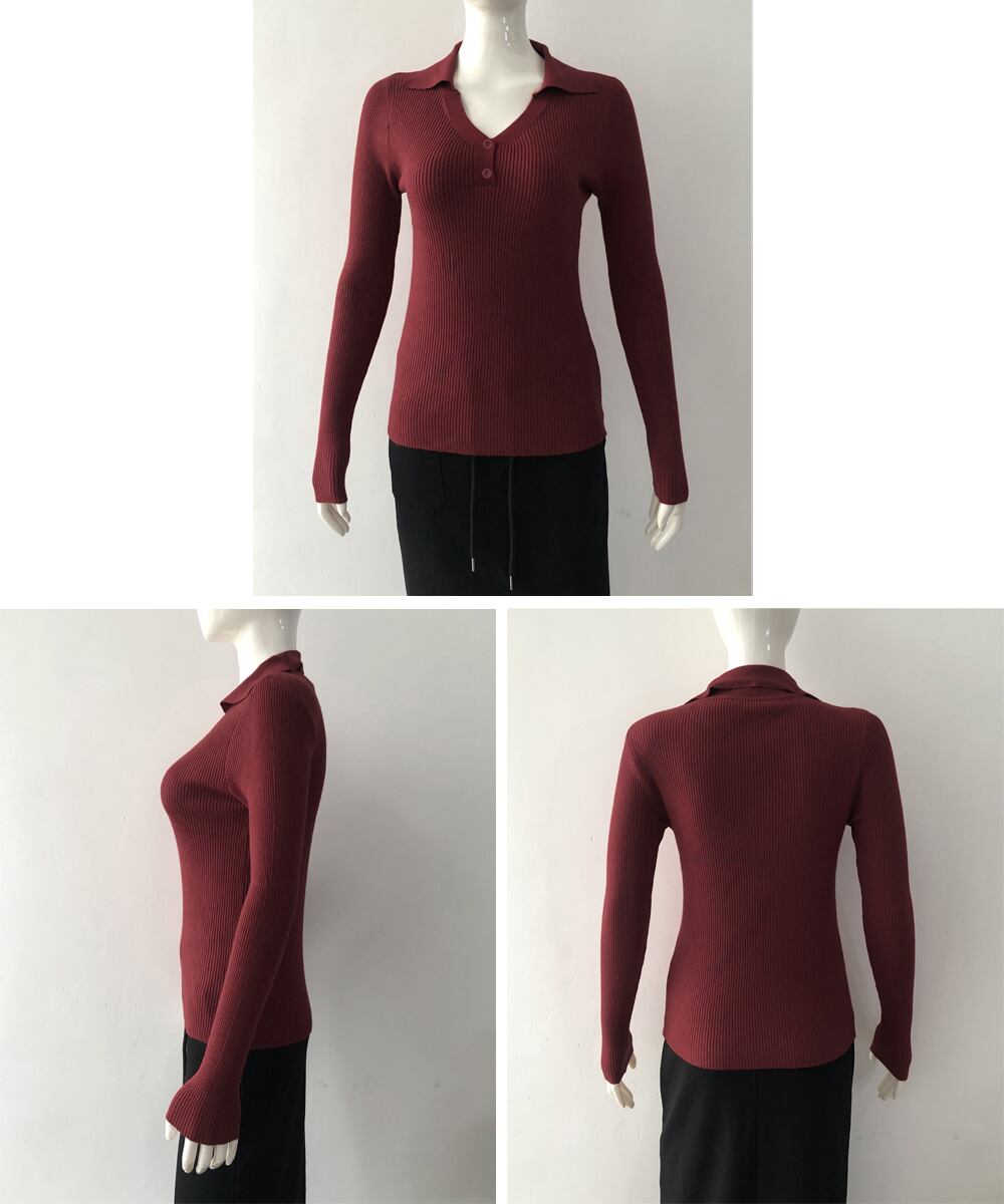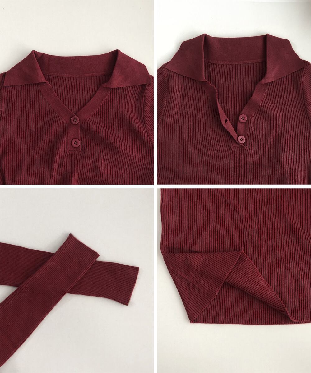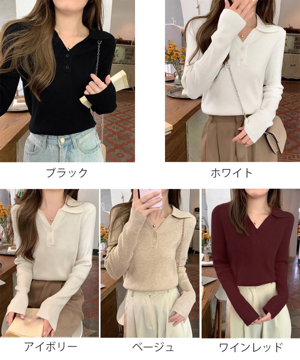 【日本倉庫からの発送】 ポロニットトップス リブニット 韓国風 #[85YN-900610_15500]【送料込み】【251123】