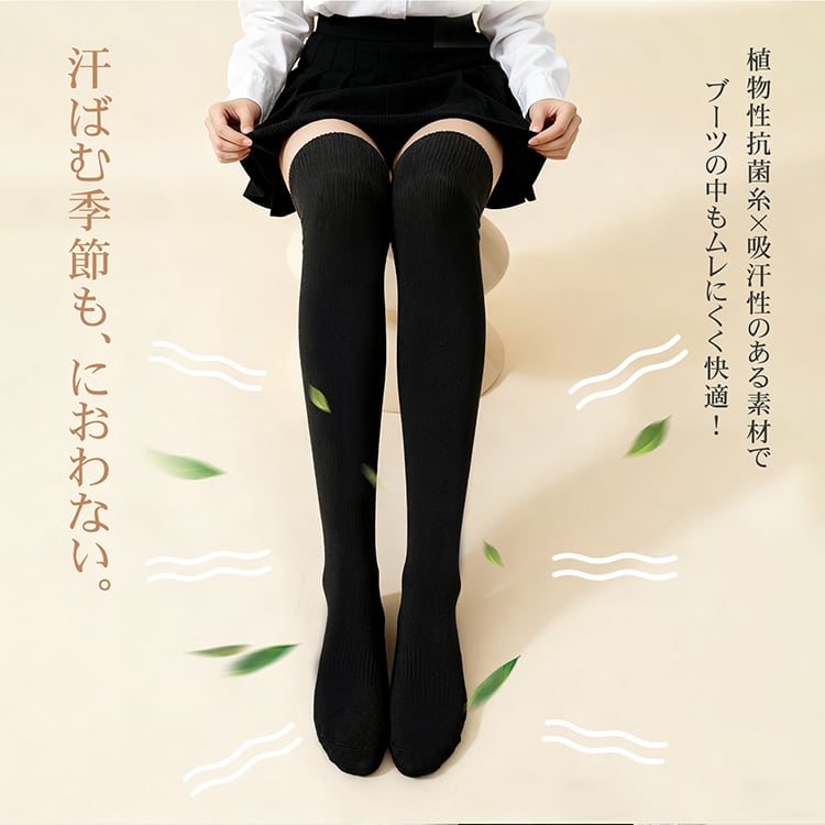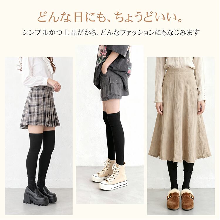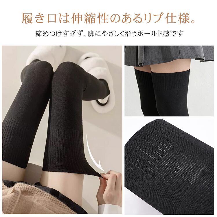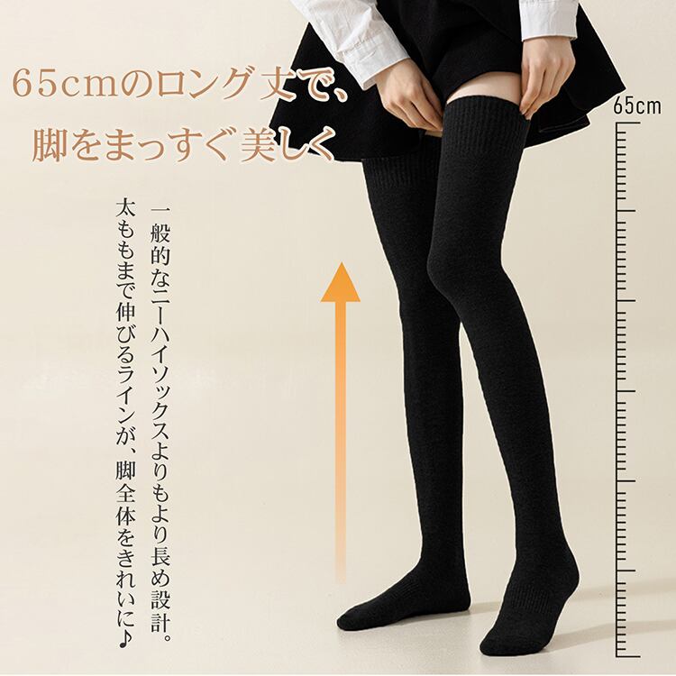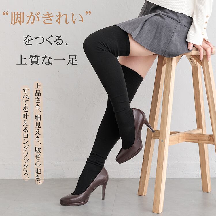 ロングソックス レディース 美脚 靴下 微圧 サイハイ ニーハイ ブラック 黒 シンプル 65cm #[ap157_9500]【送料込み】【251123】