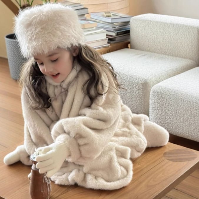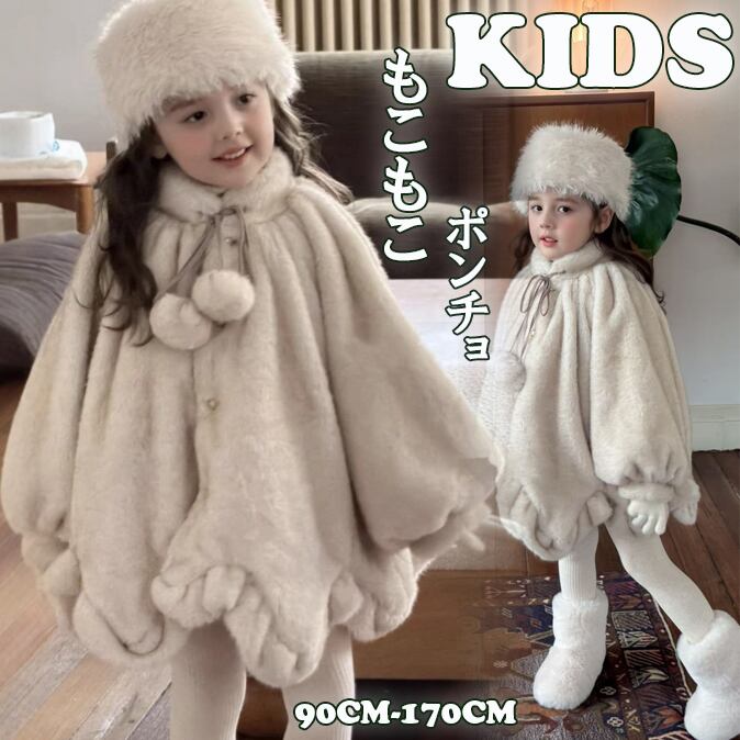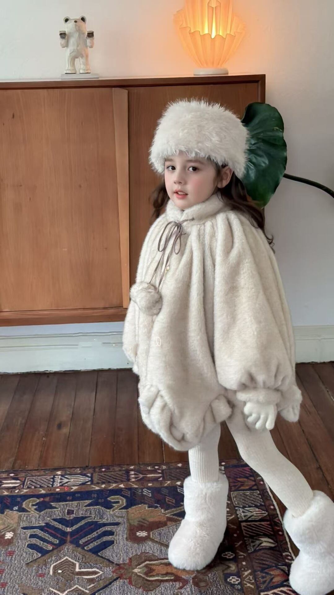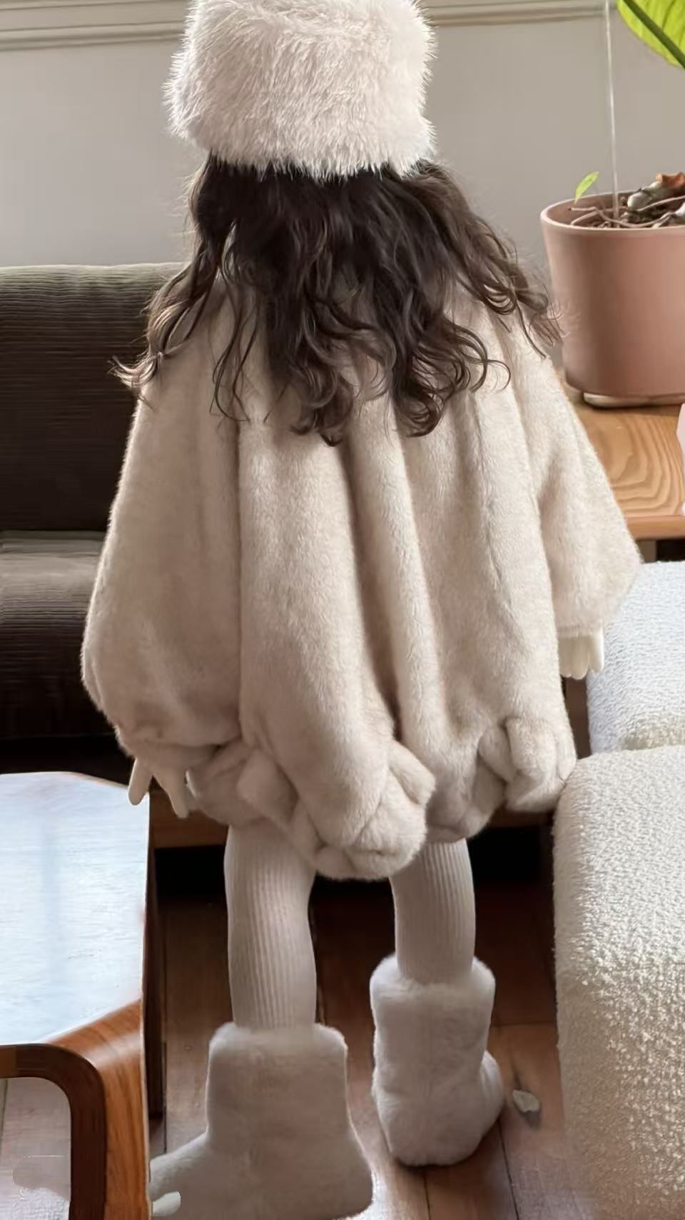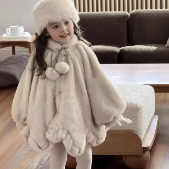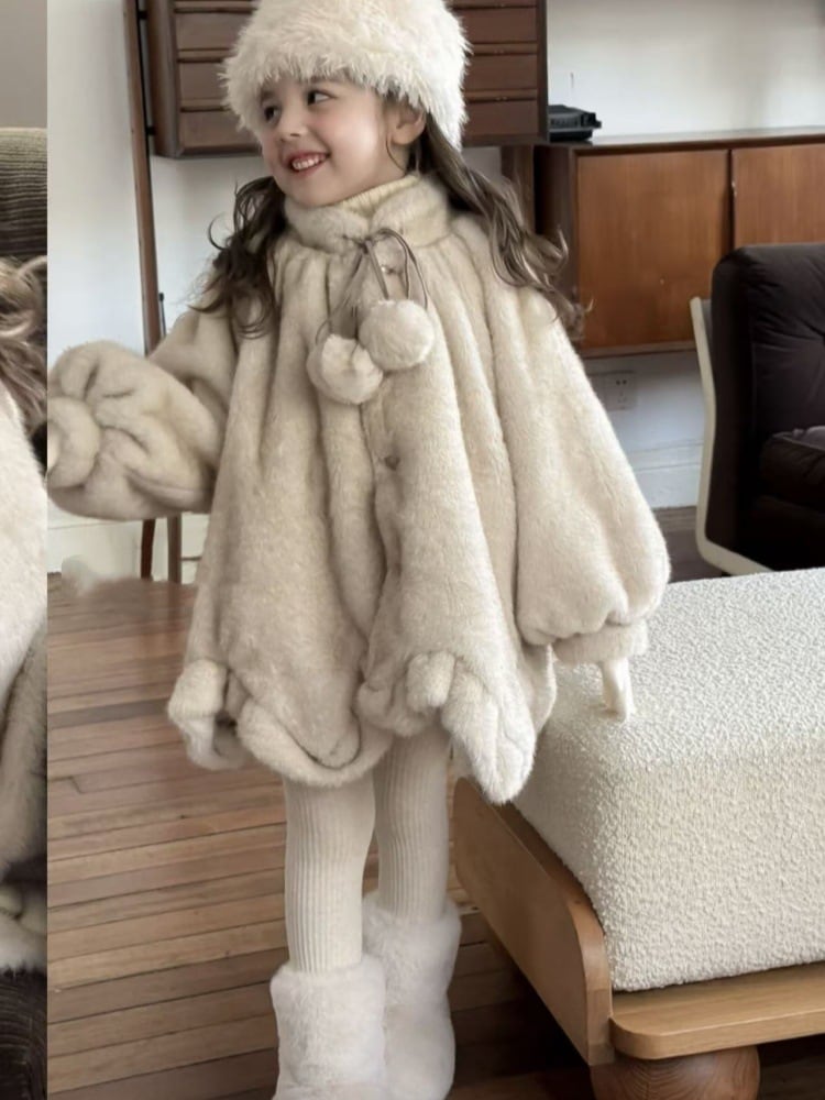 【海外からの取り寄せ】2025秋冬新作 韓国風 子供服 女の子 キッズ ファーポンチョ アウター ケープ ふわふわ もこもこ #[kids904_36800]【送料込み】【251128】