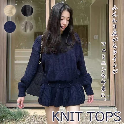 ふんわり広がるラインがフェミニンな印象に。ニットトップス