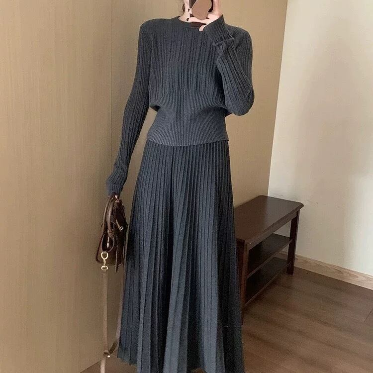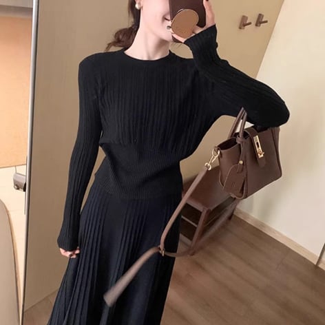 【海外からの取り寄せ】2025新作 レディース セットアップ リブウエスト切替プリーツニット 着やせ きれいめ 上品 #[set086_39800]【送料込み】【251128】