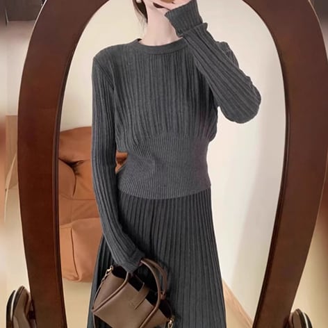 縦のラインで細見え効果抜群♪ ニットセットアップ