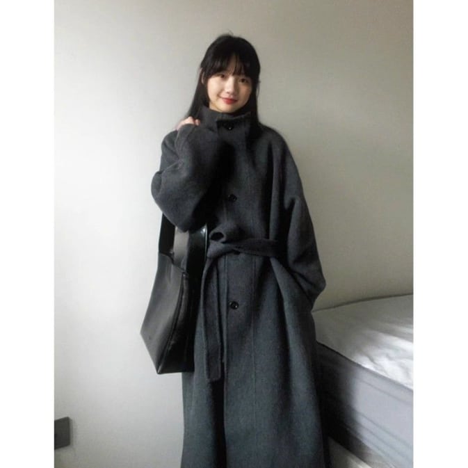 【海外からの取り寄せ】2025秋冬新作 レディース ベルト付ステンカラーコート アウター ゆったり 羽織り 無地 秋 冬 #[coat251_32800]【送料込み】【251128】