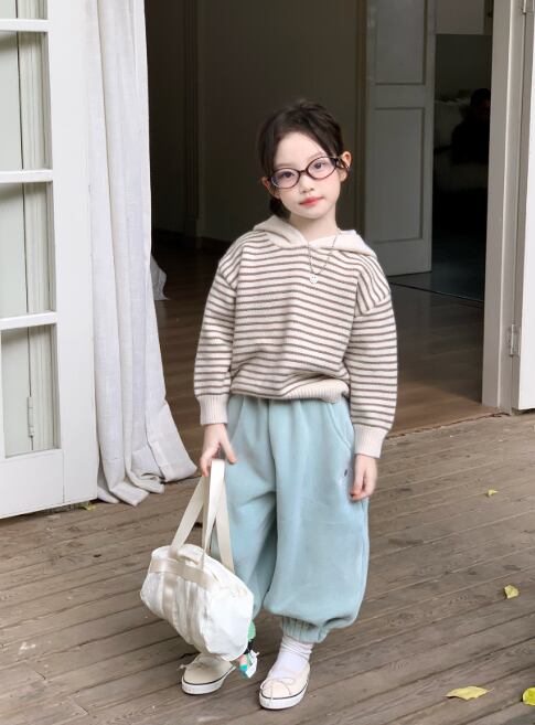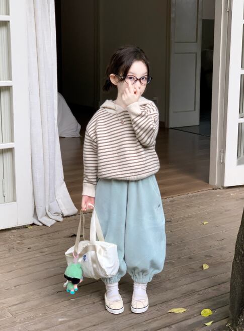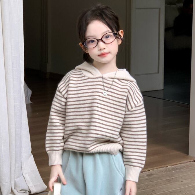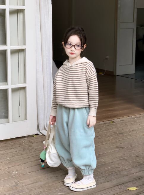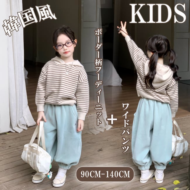 【海外からの取り寄せ】 新作 韓国子供服 キッズ ボーダー柄フーディーニット ワイドパンツ フード付き 女の子 #[kids901_24800]【送料込み】【251128】