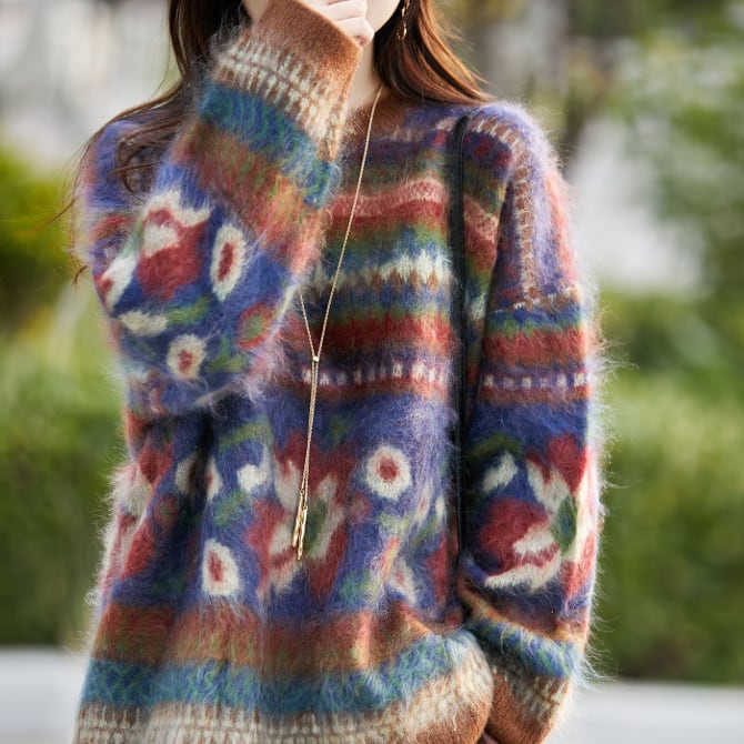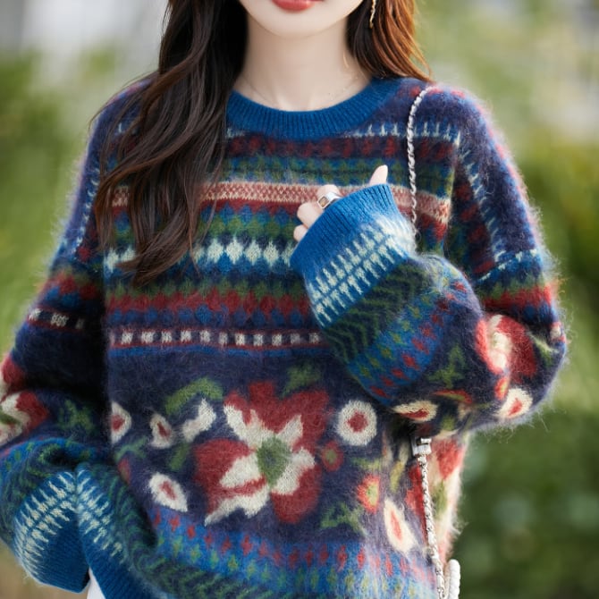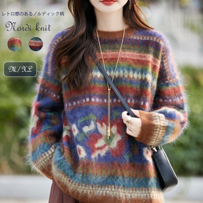 【海外からの取り寄せ】 新作 ノルディック柄 ニット トップス プルオーバー セーター レトロ トレンド 北欧 #[tops731_29800]【送料込み】【251128】