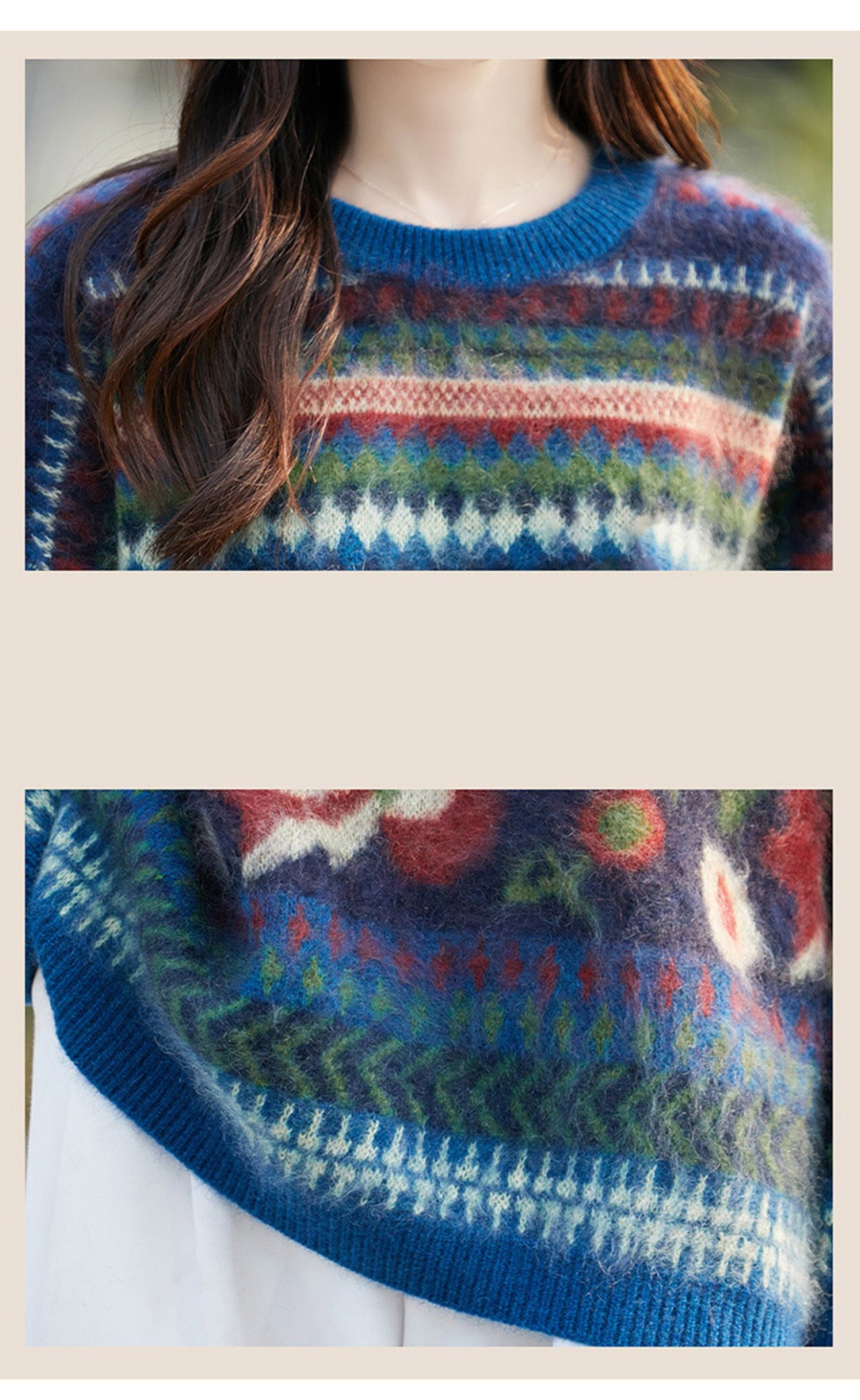 レトロ感のあるノルディック柄 ラウンドネックニット
