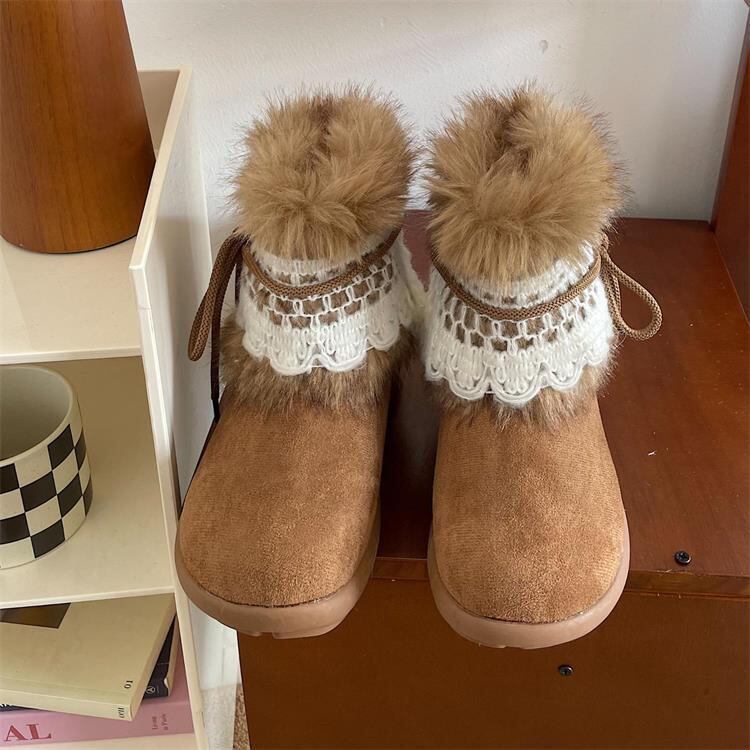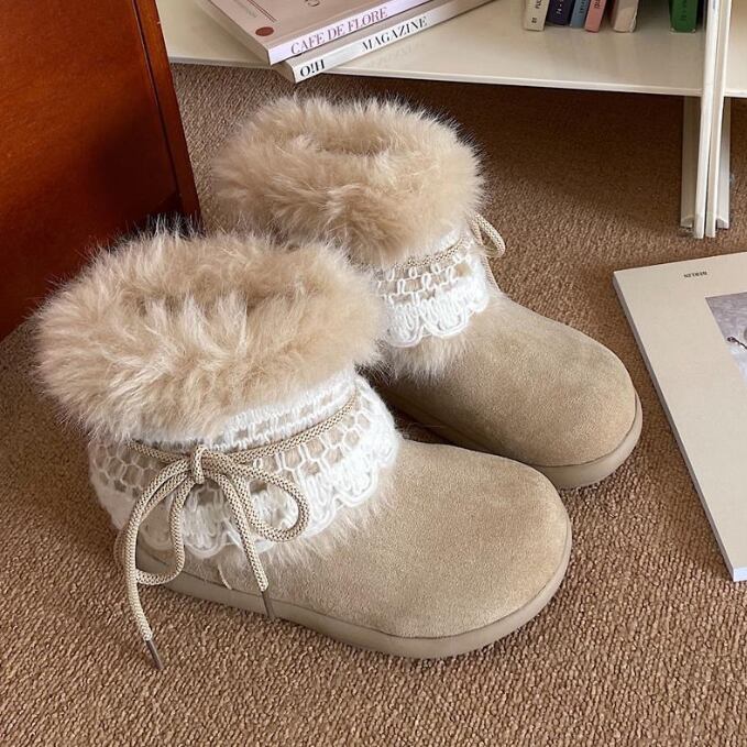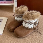 【海外からの取り寄せ】 新作 レディース 靴 レース付きブーツ ムートン調 スノーブーツ ショート 防寒 裏起毛 裏ボア #[boots401_26800]【送料込み】【251128】